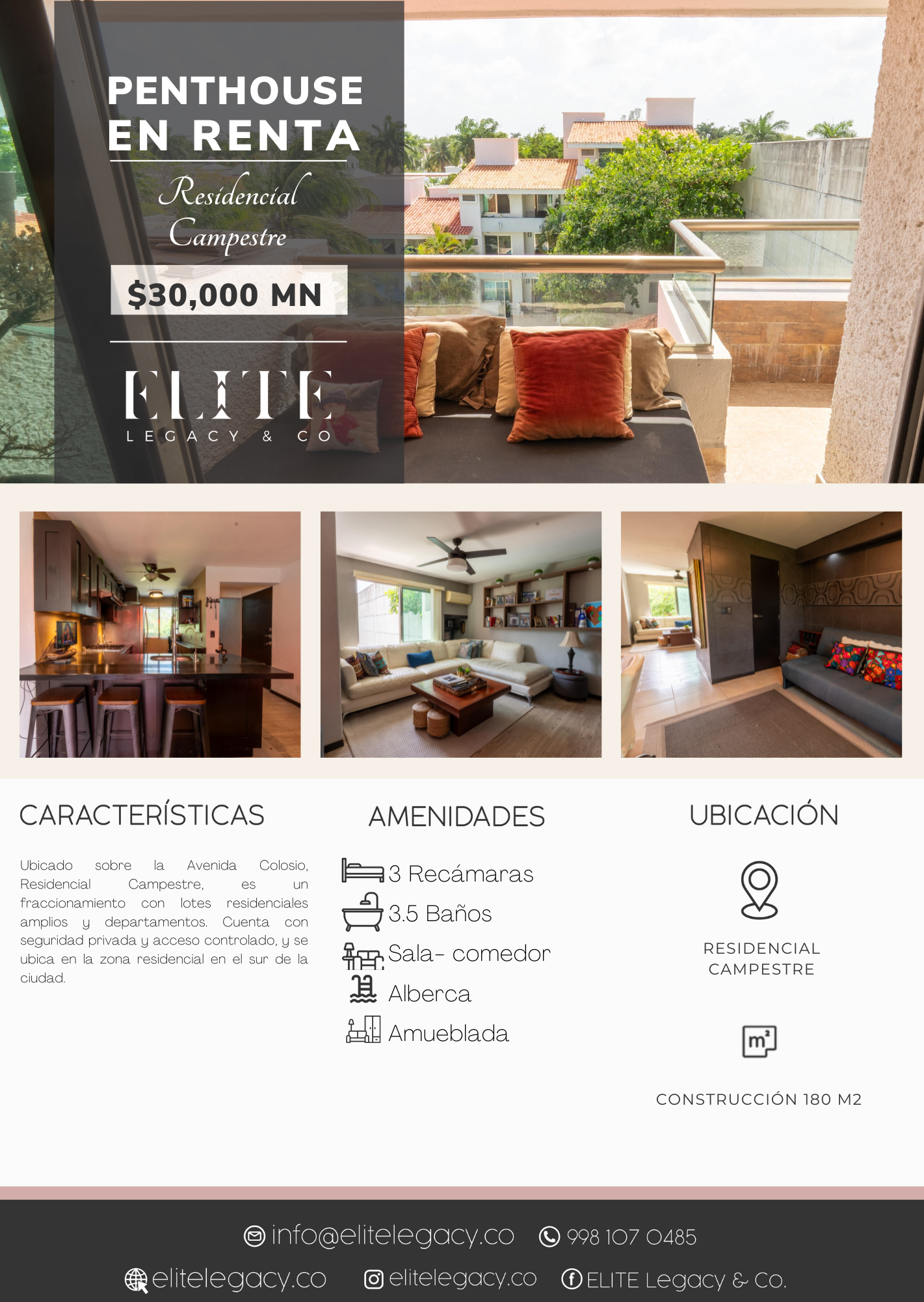 Ubicado sobre la Avenida Colosio, Residencial Campestre, es un fraccionamiento con lotes residenciales amplios y departamentos. Cuenta con seguridad privada y acceso controlado, y se ubica en la zona residencial en el sur de la ciudad. A 10 minutos del Aeropuerto de Cancún, 10 minutos del centro de Cancún, a 15 minutos de la estación principal del Tren Maya y a su alrededor se encuentran supermercados, colegios, universidades, centros deportivos, restaurantes y nuevas áreas comerciales.