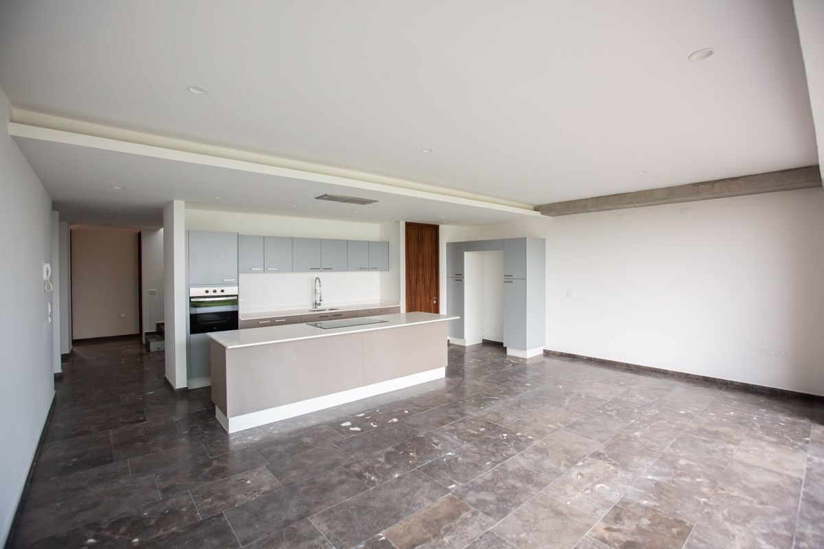 Área abierta de cocina, sala y comedor con terraza, recamara 1 con closet y baño recamara 2 con vestidor y baño. Cuarto de servicio y de lavado.