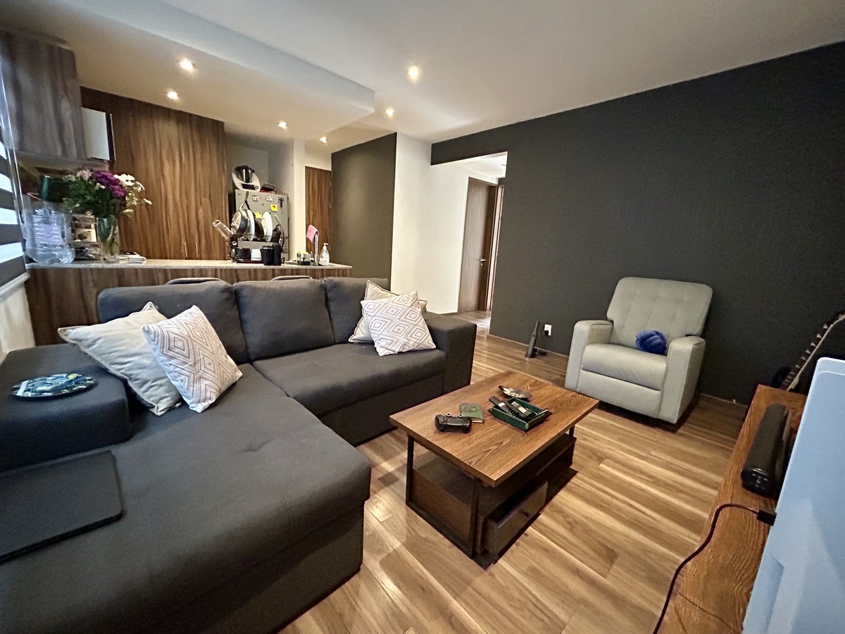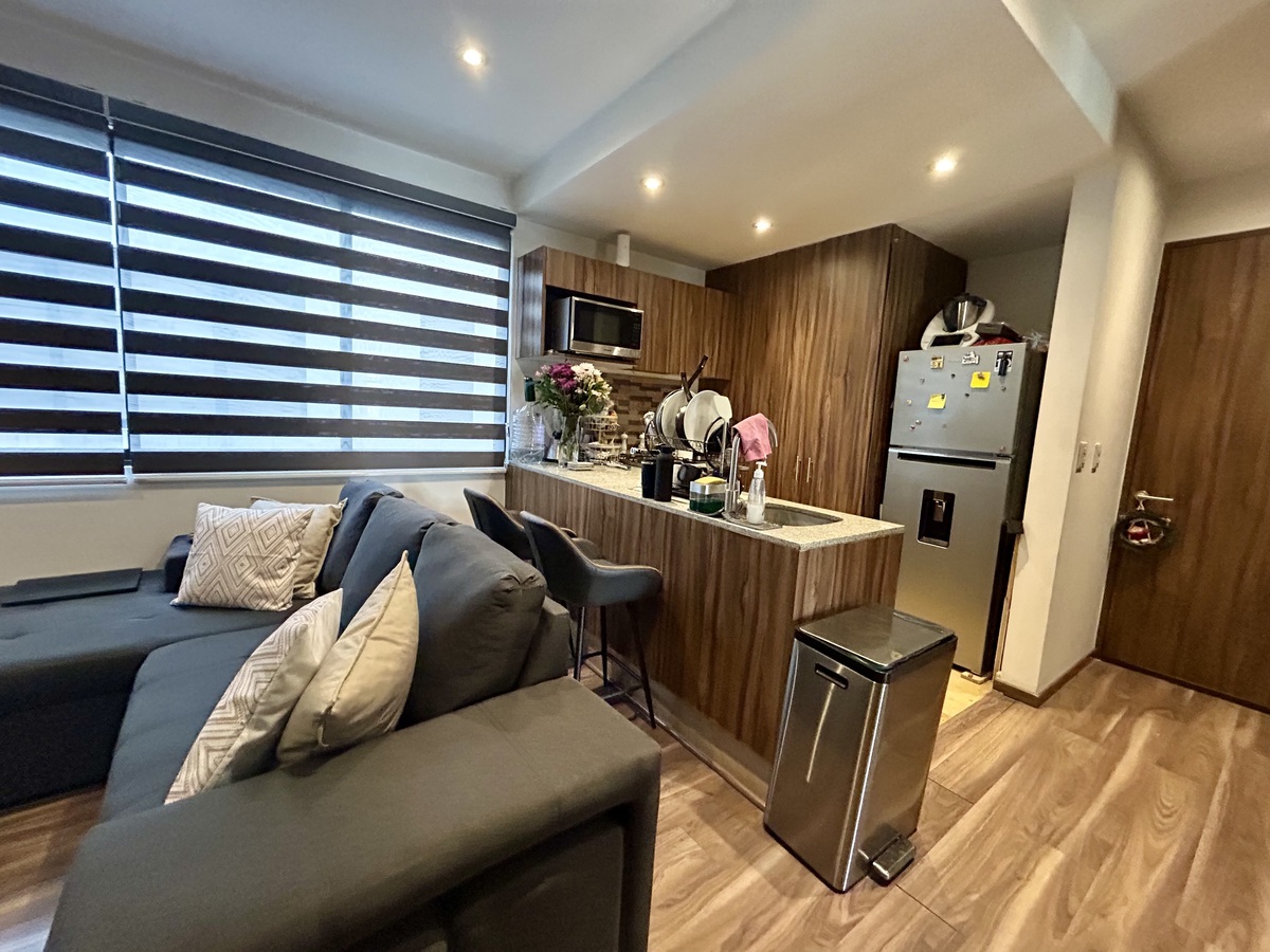 Small building of 12 apartments, only 6 years old, very well located in Santa María la Rivera, a couple of blocks from Forum Buenavista.Departamento de 2 recámaras con salida a terraza ambas, la recámara principal con baño completo integrado, sala comedor con cocina abierta y un baño completo que da servicio a segunda recámara y visitas. 2 lugares de estacionamiento.