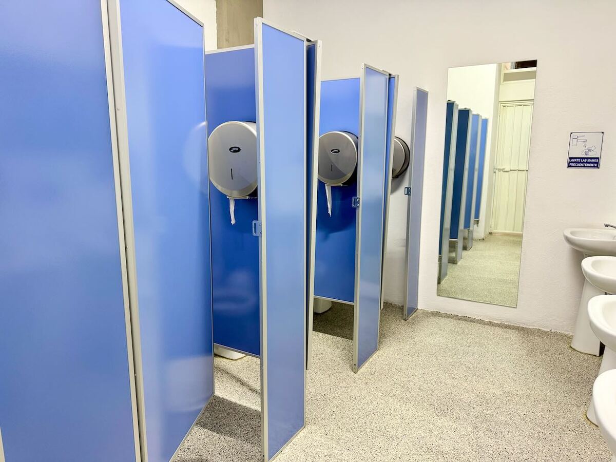 Bathrooms: Located on each mezzanine, equipped with urinals and restrooms adapted for people with disabilities.