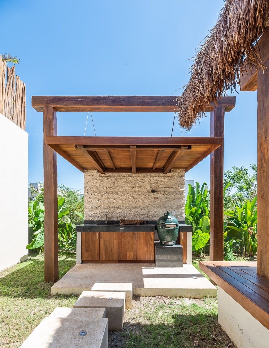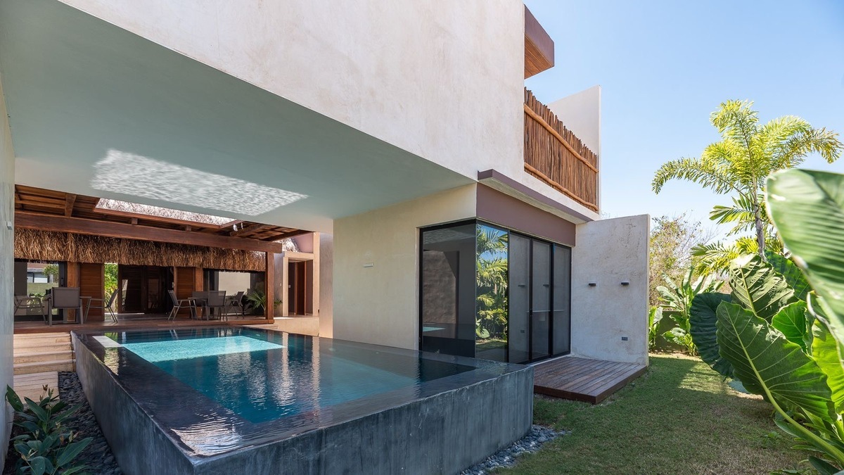 The house has a very particular style as it is surrounded by nature and is built in separate modules, with the social area of the house featuring a large central palapa. It gives you a feeling of peace, freedom, and connection with the environment.