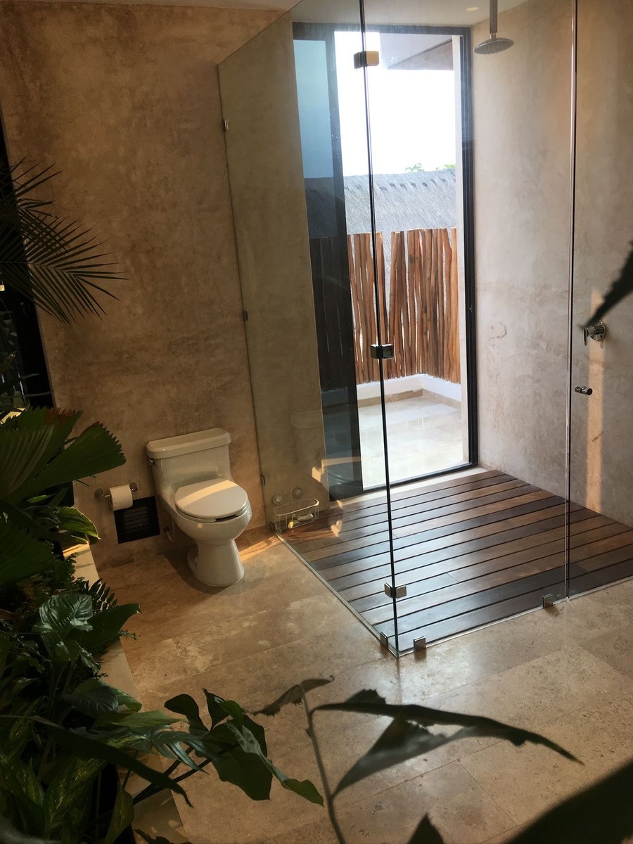- Recámara principal en la planta alta con una terraza privada y jacuzzi al aire libre. Vestidor y amplio baño completo.