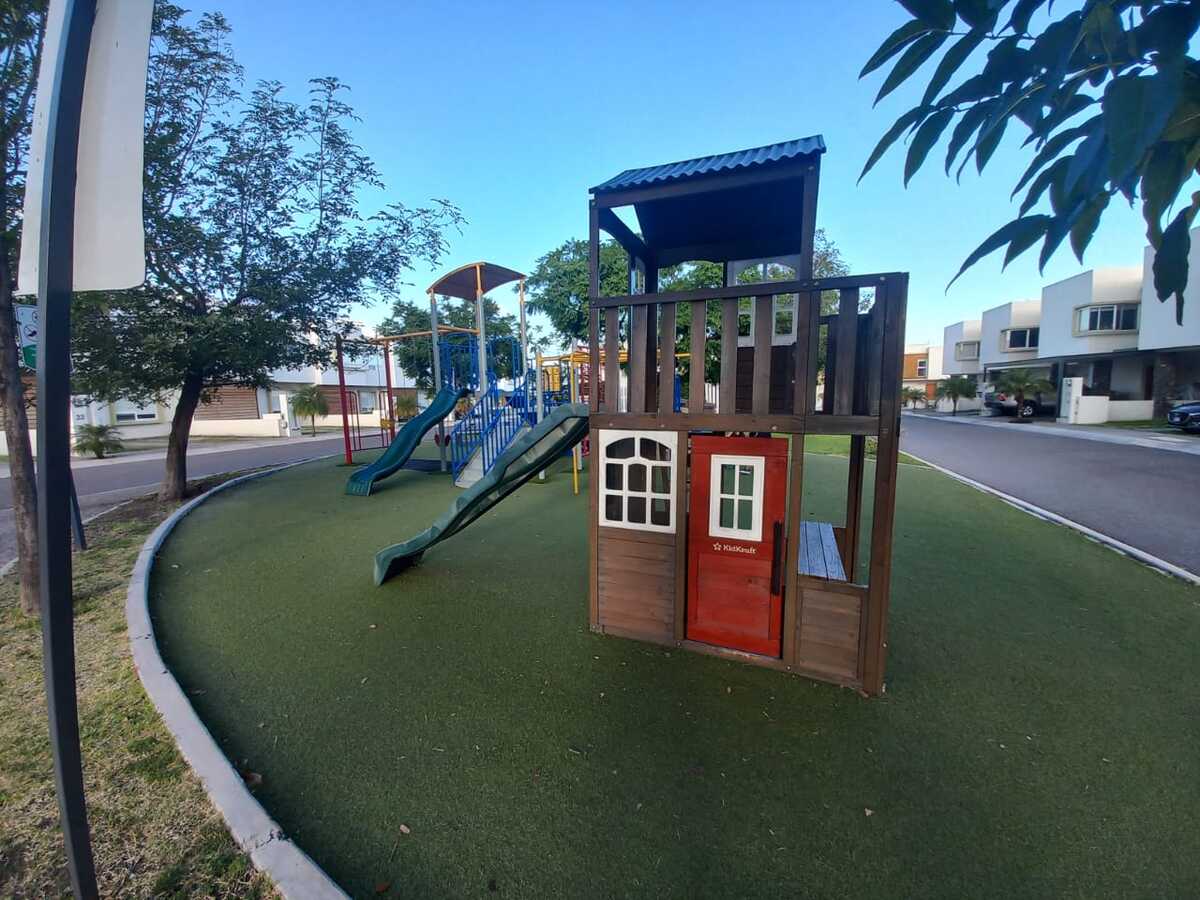 PB: Sala, comedor, cocina abierta equipada con barra y alacena, medio baño, estudio, jardin trasero con piedra en muro, pasto sintético y muro verde, cuarto de lavado techado, estacionamiento para 2 lugares.