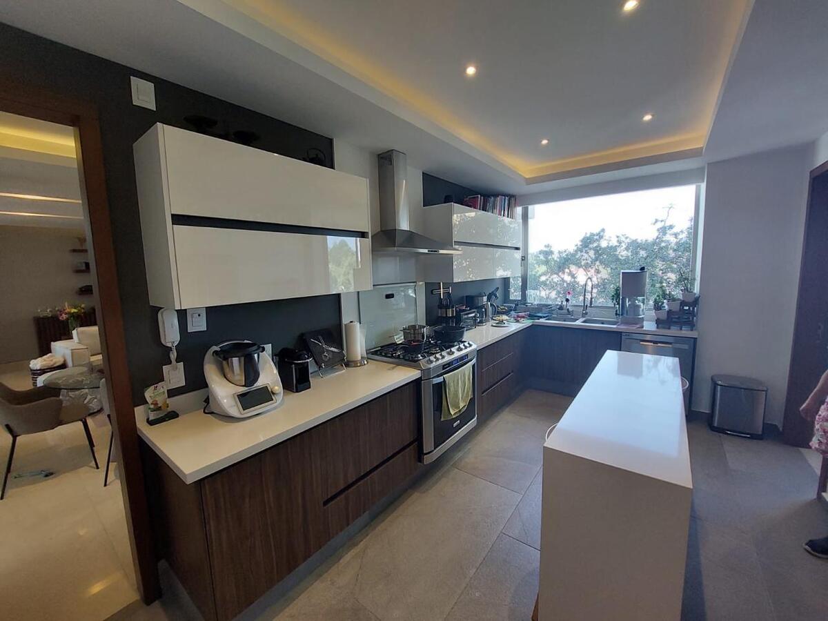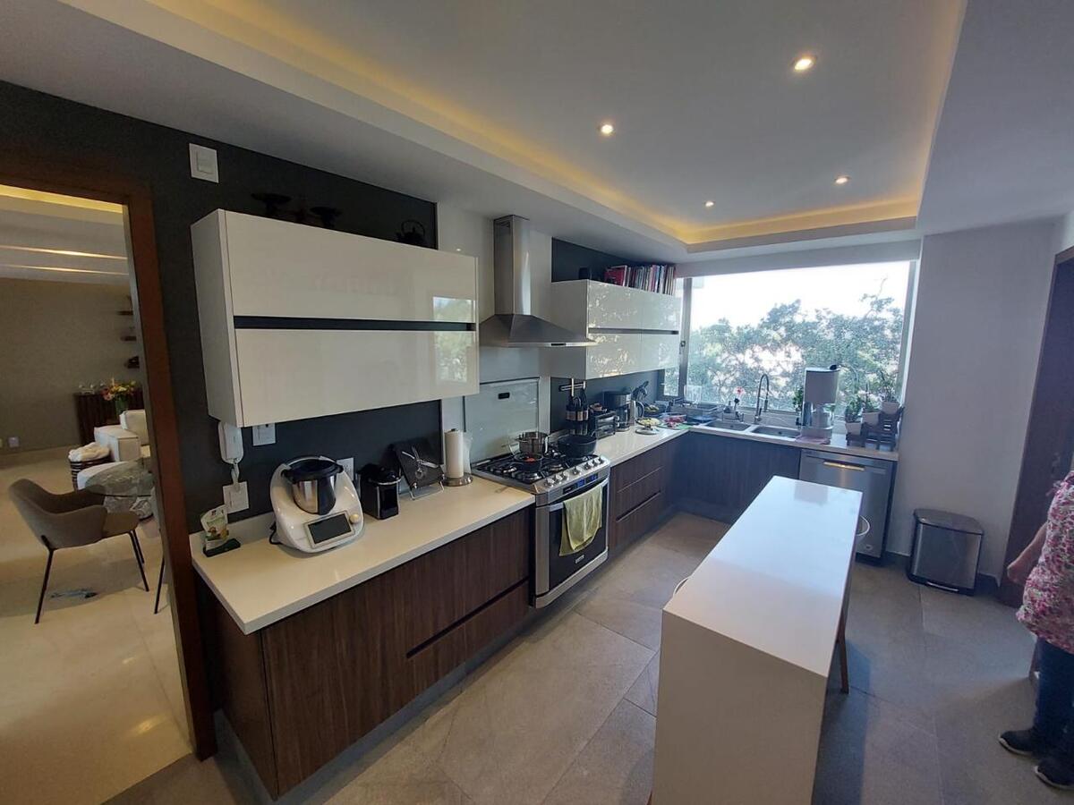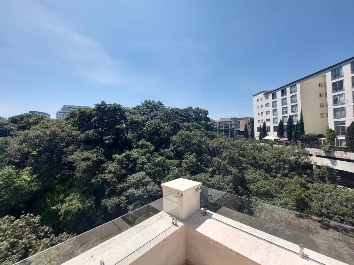 Precioso departamento tipo Garden House Americano, terraza estilo, Carolo, Family Room, sala, comedor, estudio que se puede convertir en cuarta recámara, 4 estacionamientos, 2 Bodegas, una en la parte alta y otra en el sótano.