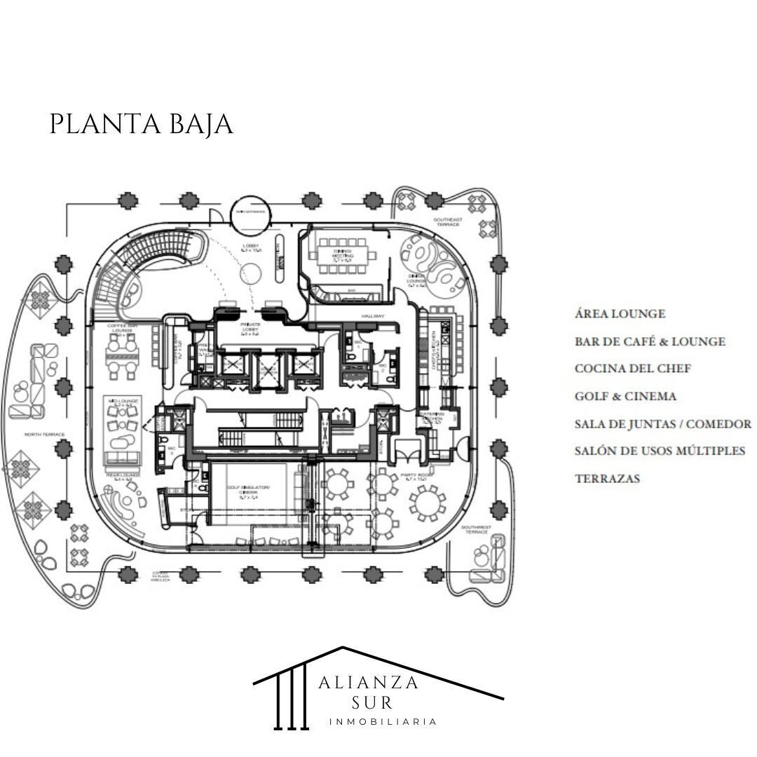 Nivel 1: social (área lounge, bar de café & lounge, cocina del chef, golf & cinema, sala de juntas, comedor, salón de usos múltiples, terrazas)
