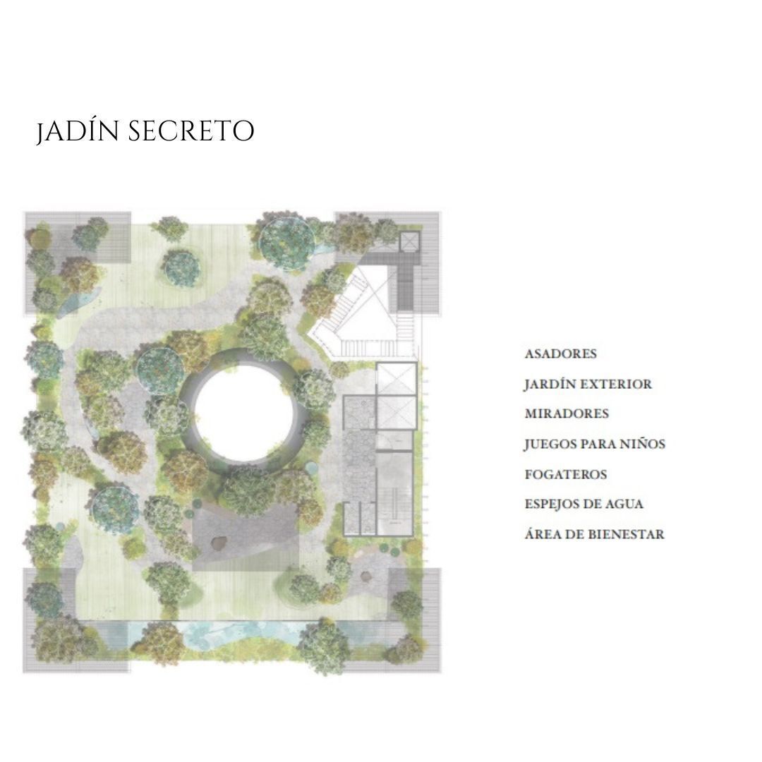 Jardín: (asadores, miradores, juegos para niños, fogateros, espejos de agua, área de bienestar)