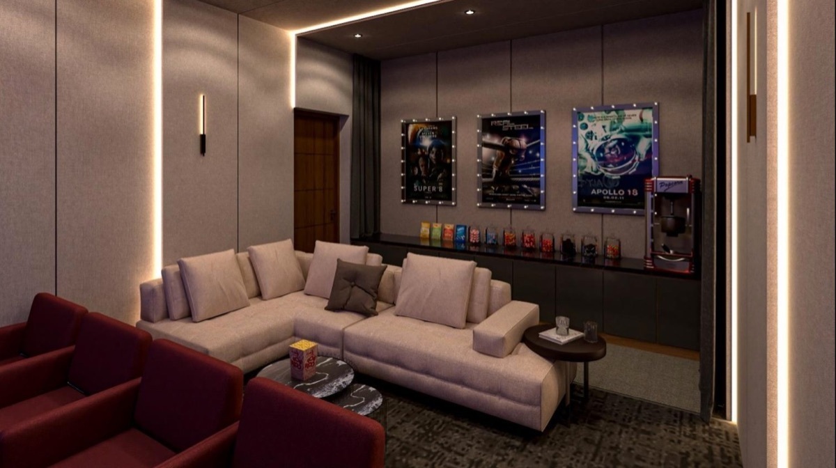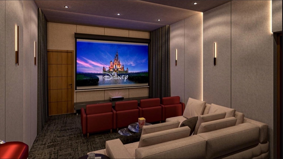 - 1 bedroom / cinema room with a full bathroom and walk-in closet