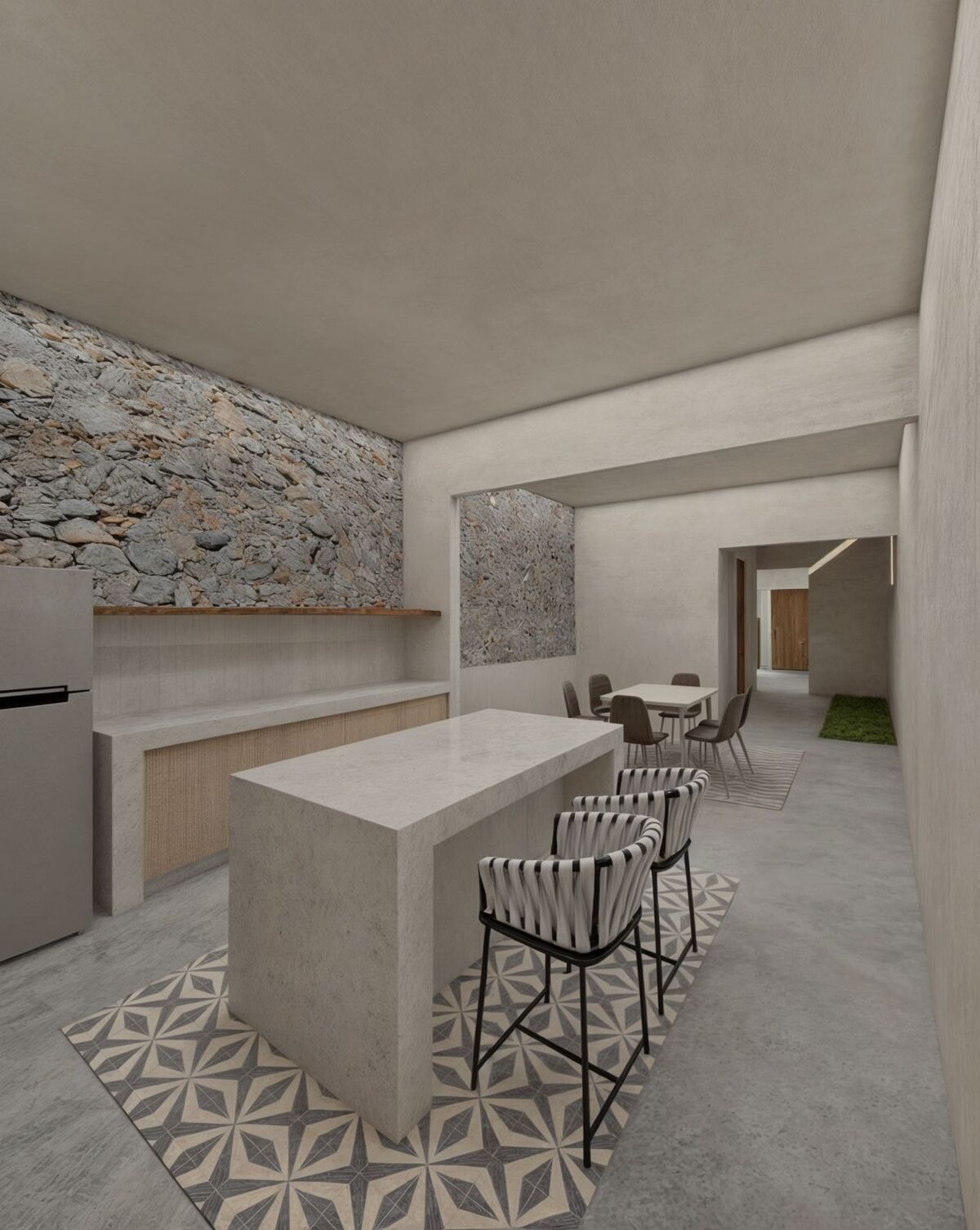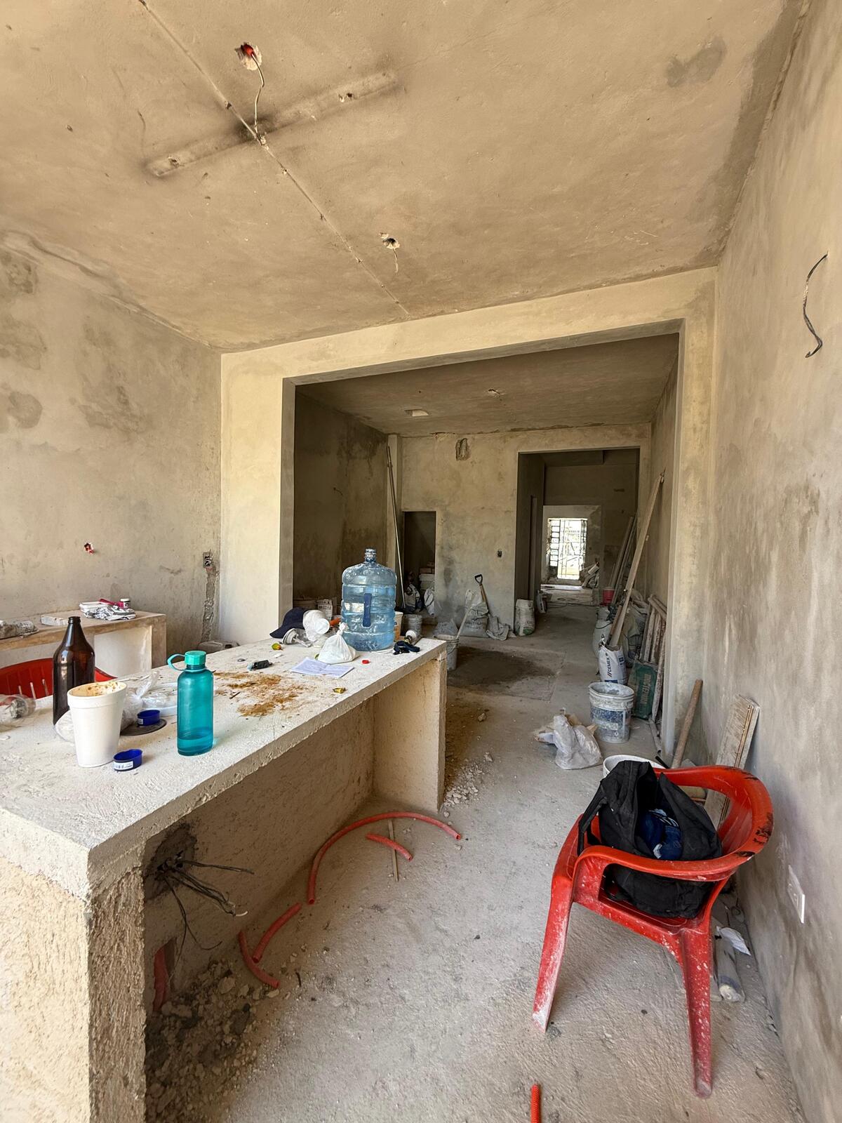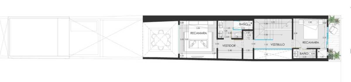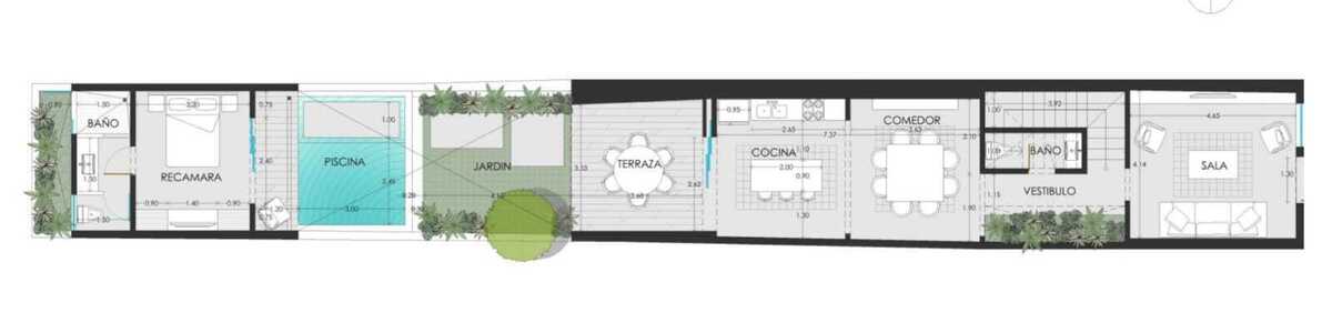 I'm pre-selling this house, currently being renovated, located in the quiet San Cristóbal neighborhood of Mérida's Downtown. The house has three bedrooms (two upstairs and one downstairs), each with its own bathroom, and an extra guest bathroom (total 3.5 bathrooms). The layout includes a living room, an entrance hall with a guest bathroom, a kitchen, a double-height covered terrace, a patio with a small pool, and a bedroom with a bathroom at the back. Upstairs, there's a laundry area and two bedrooms with their own bathrooms (one with a small balcony).