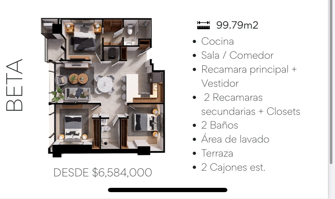 • BETA | 3 recámaras | 99.7 m² → $6,584,000 MXN