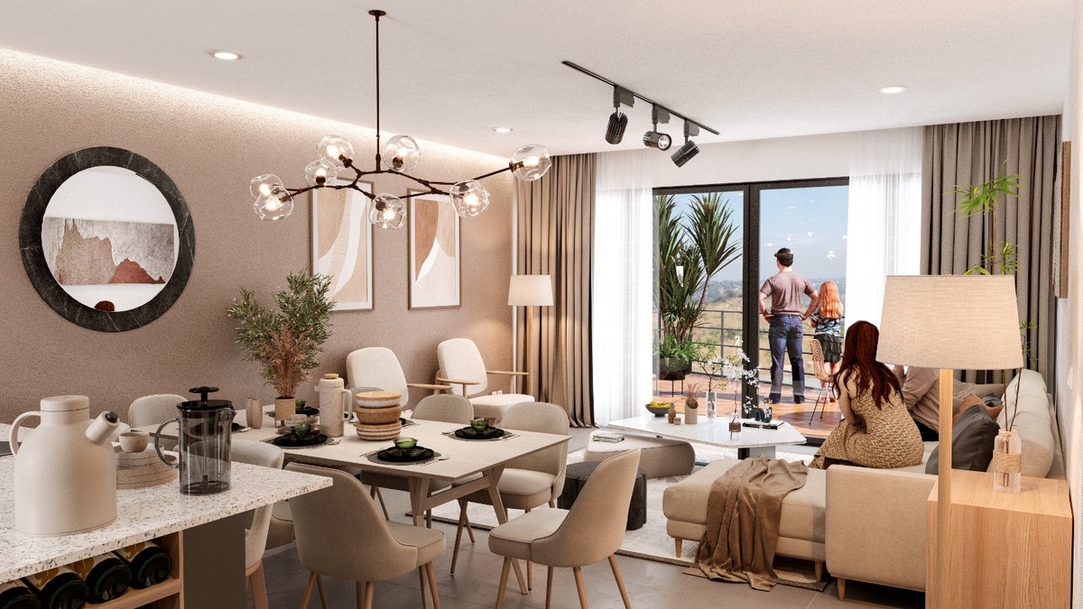 El departamento número 6 se encuentra en el nivel 1 y cuenta con una superficie desde 107.03 m² de construcción. Su distribución ofrece espacios amplios, funcionales y luminosos, con un diseño pensado para el confort y la modernidad. Dispone de dos recámaras, la principal con baño completo y vestidor, un segundo baño completo y medio baño para visitas. La cocina está equipada con materiales de alta calidad, y el área social integra sala y comedor con acceso a terraza o balcón, generando un ambiente ideal para la convivencia.