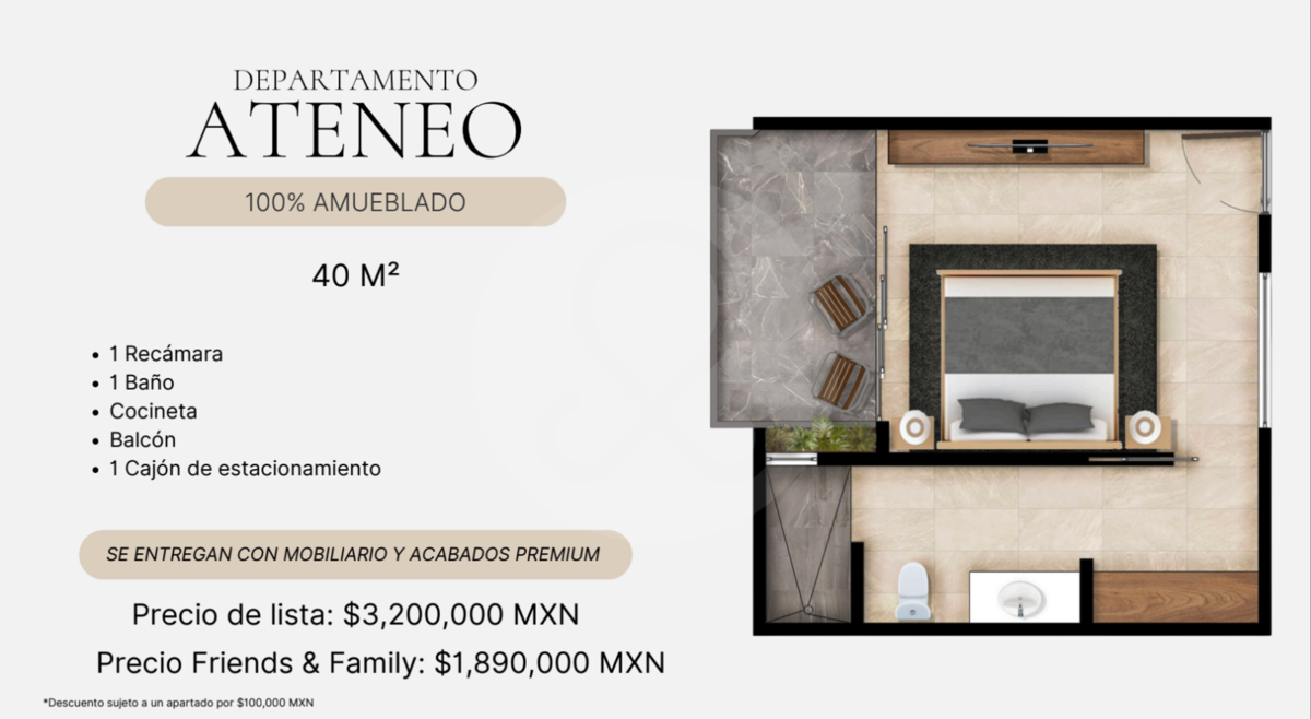 Es un completo de 239 departamentos completamente amueblados y equipados, ya sean para uso personal o para inversión.