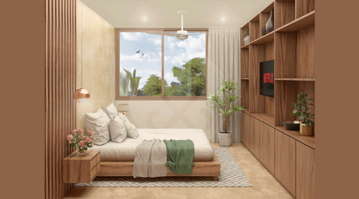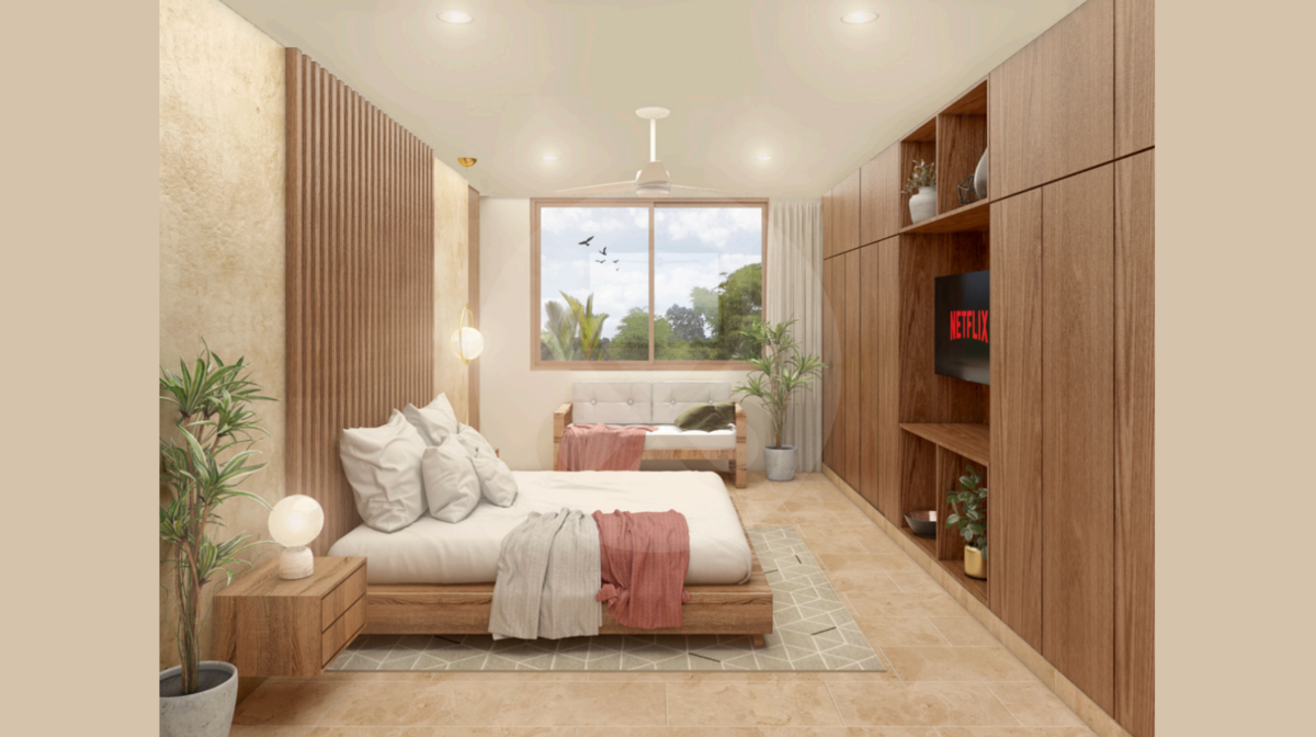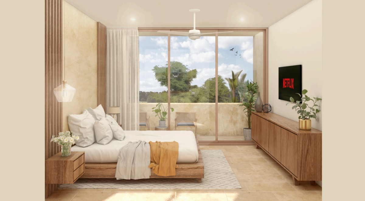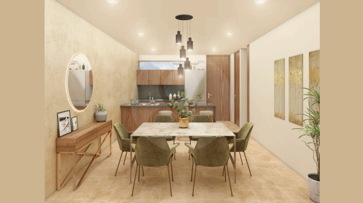 The images are for illustration purposes and may vary from the final product.Departamentos en preventa Novus Renati ubicados en la carretera de Chicxulub Pueblo.