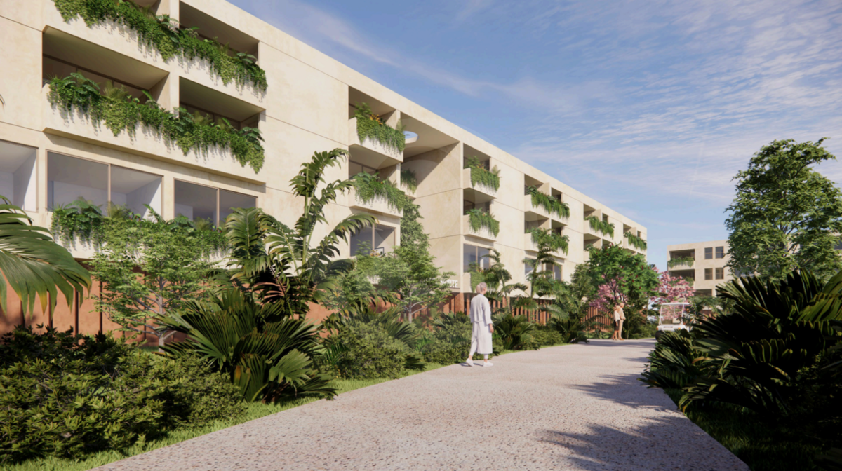 Pre-sale apartments Novus Renati located on the road to Chicxulub Pueblo.