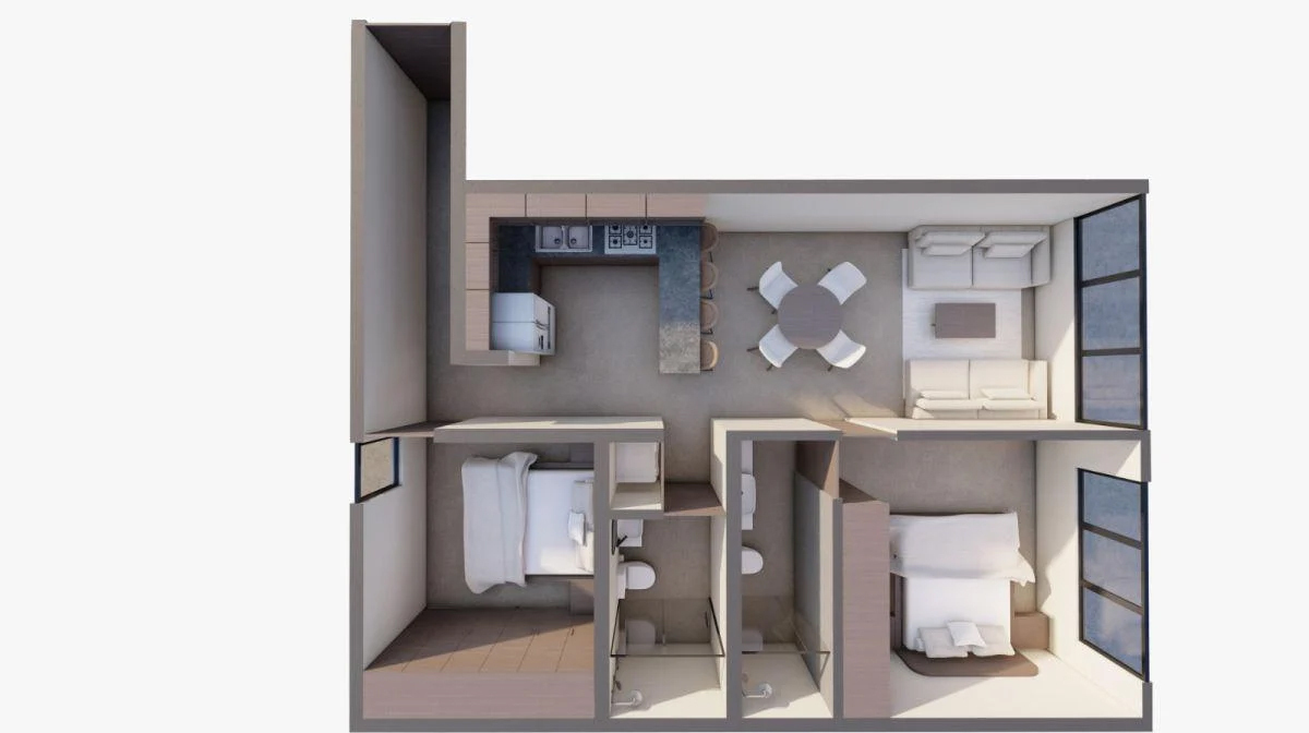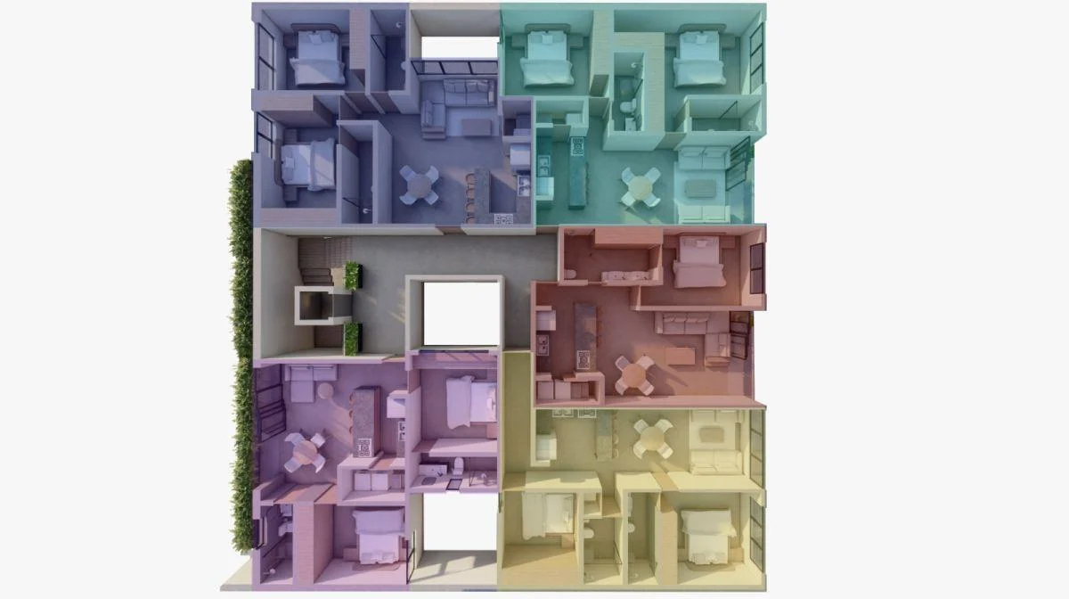 Excelente desarrollo de 4 niveles de modernos departamentos ideales para quienes buscan comodidad y privacidad. Las recámaras son amplias y cuentan con baño completo, brindando privacidad y confort