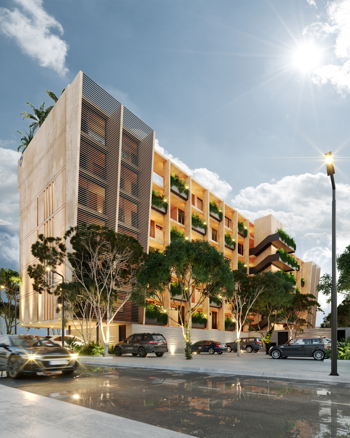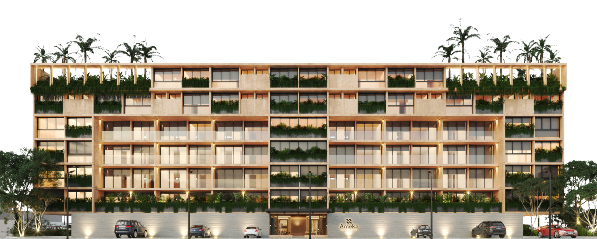 AMEKA is a set of 50 apartments, distributed over 7 levels, with 8 different models; featuring amenities, equipment, and parking.