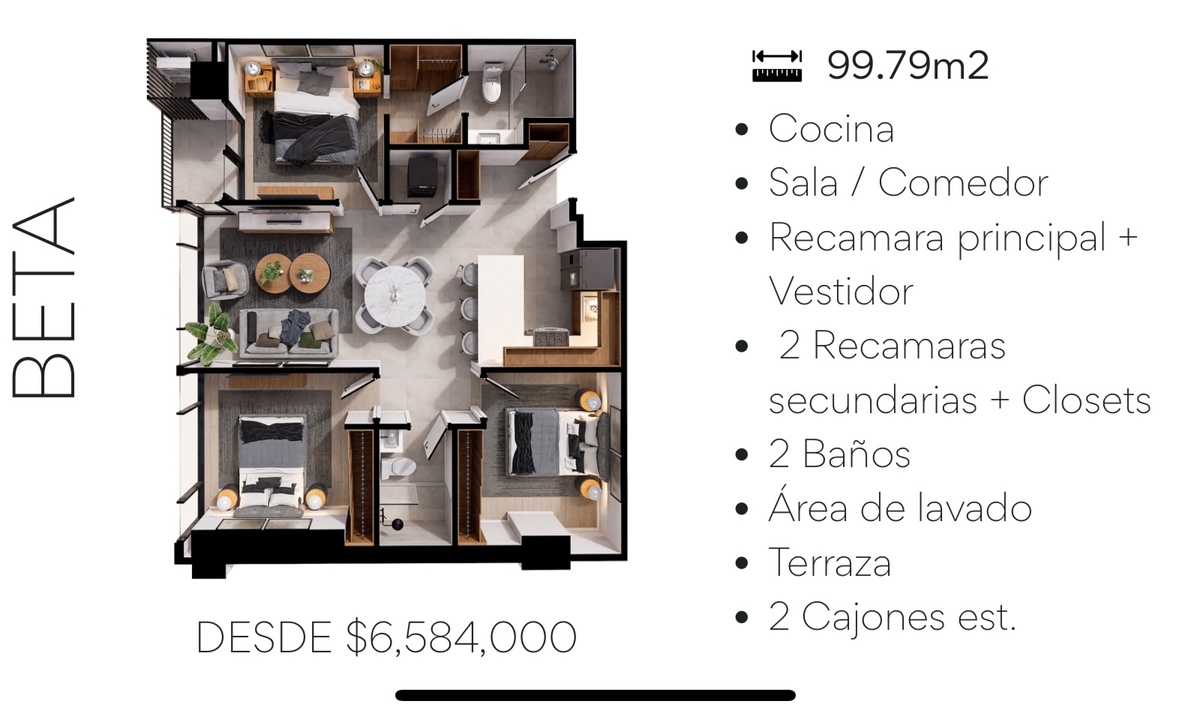 • Beta – 99.79 m² desde $6,584,000 MXN