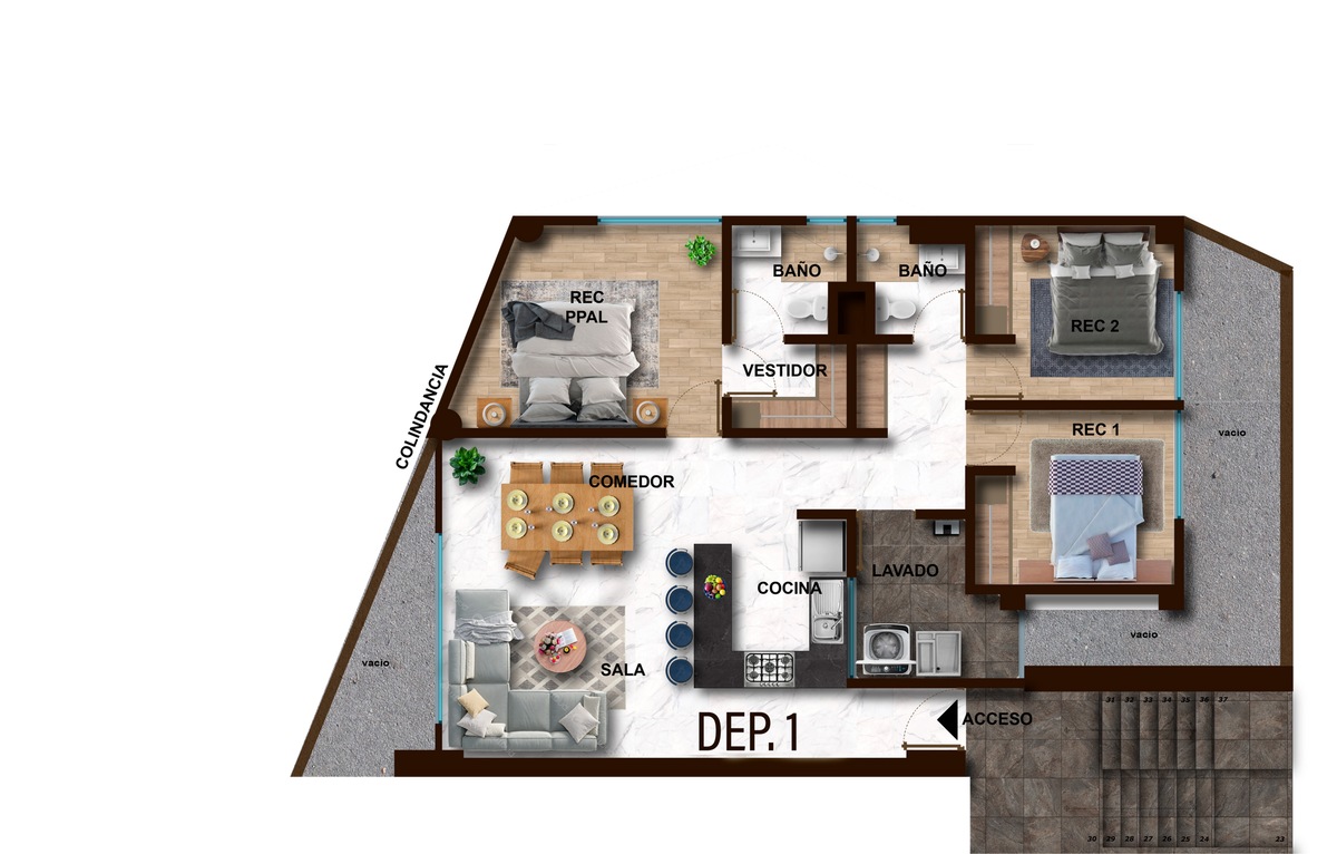 Starting from $2,604,357.14Departamento con 3 habitaciones, principal con baño y vestidor, secundarias comparten baño.