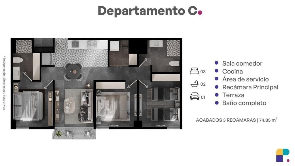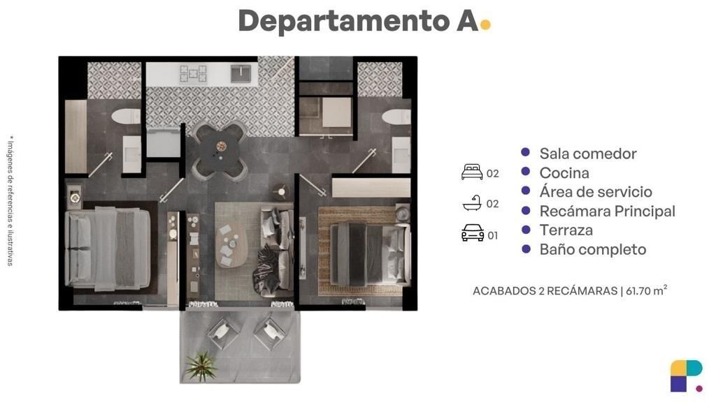 Departamentos con amplio balcón de 1, 2 y 3 Habitaciones.