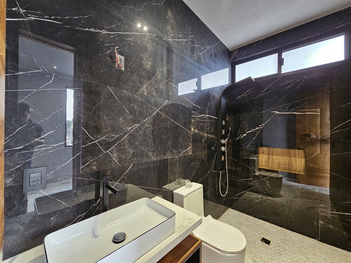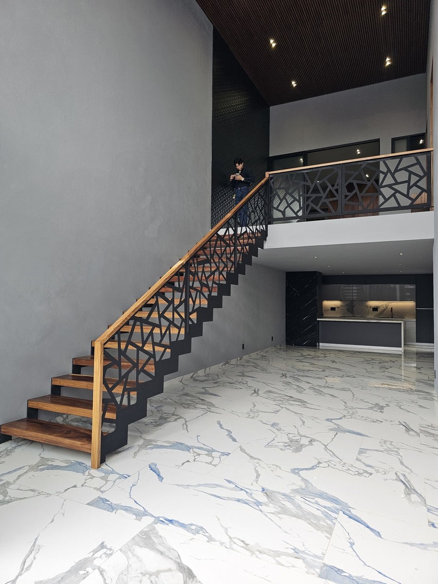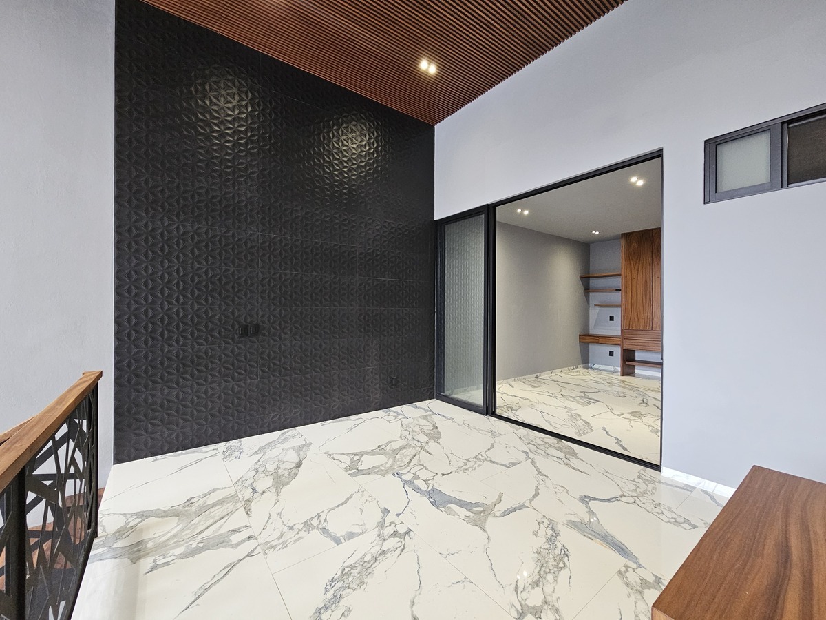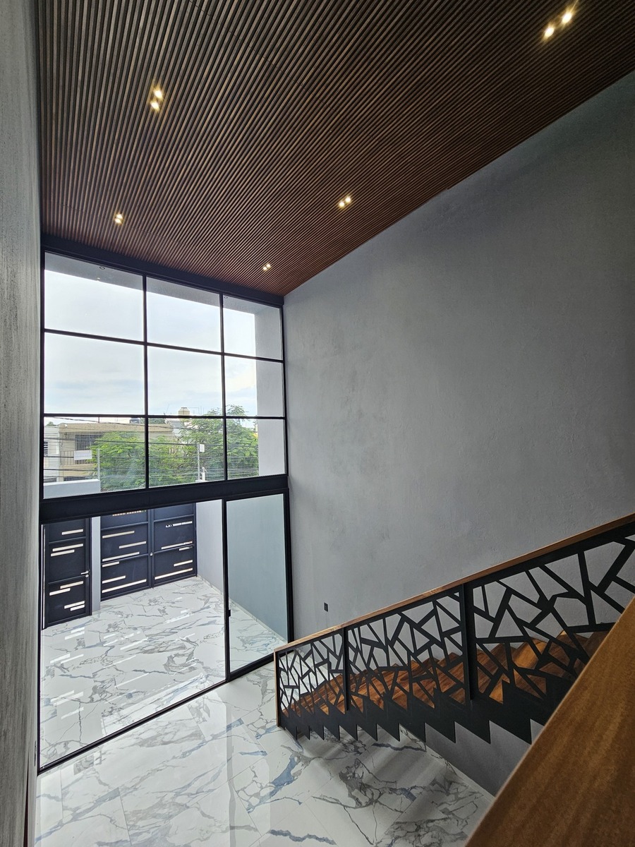 ✨The house features double height in all social areas, has 80 x 160 tiles, parota wood throughout the carpentry of the house.