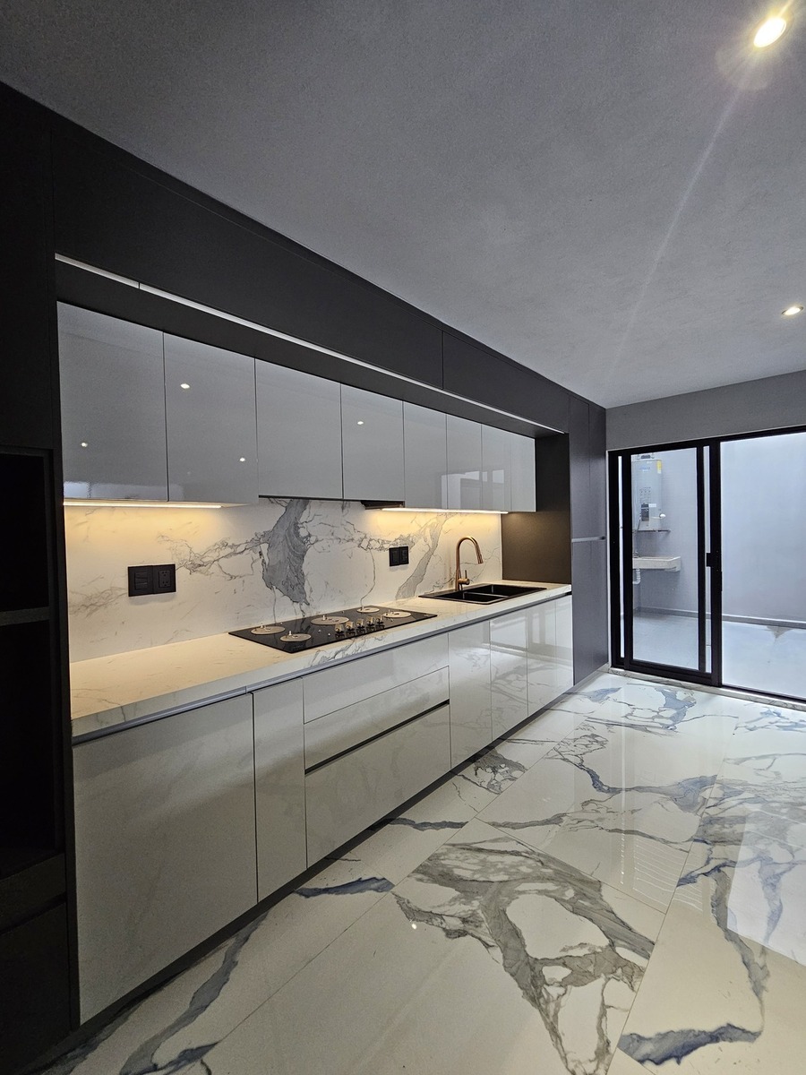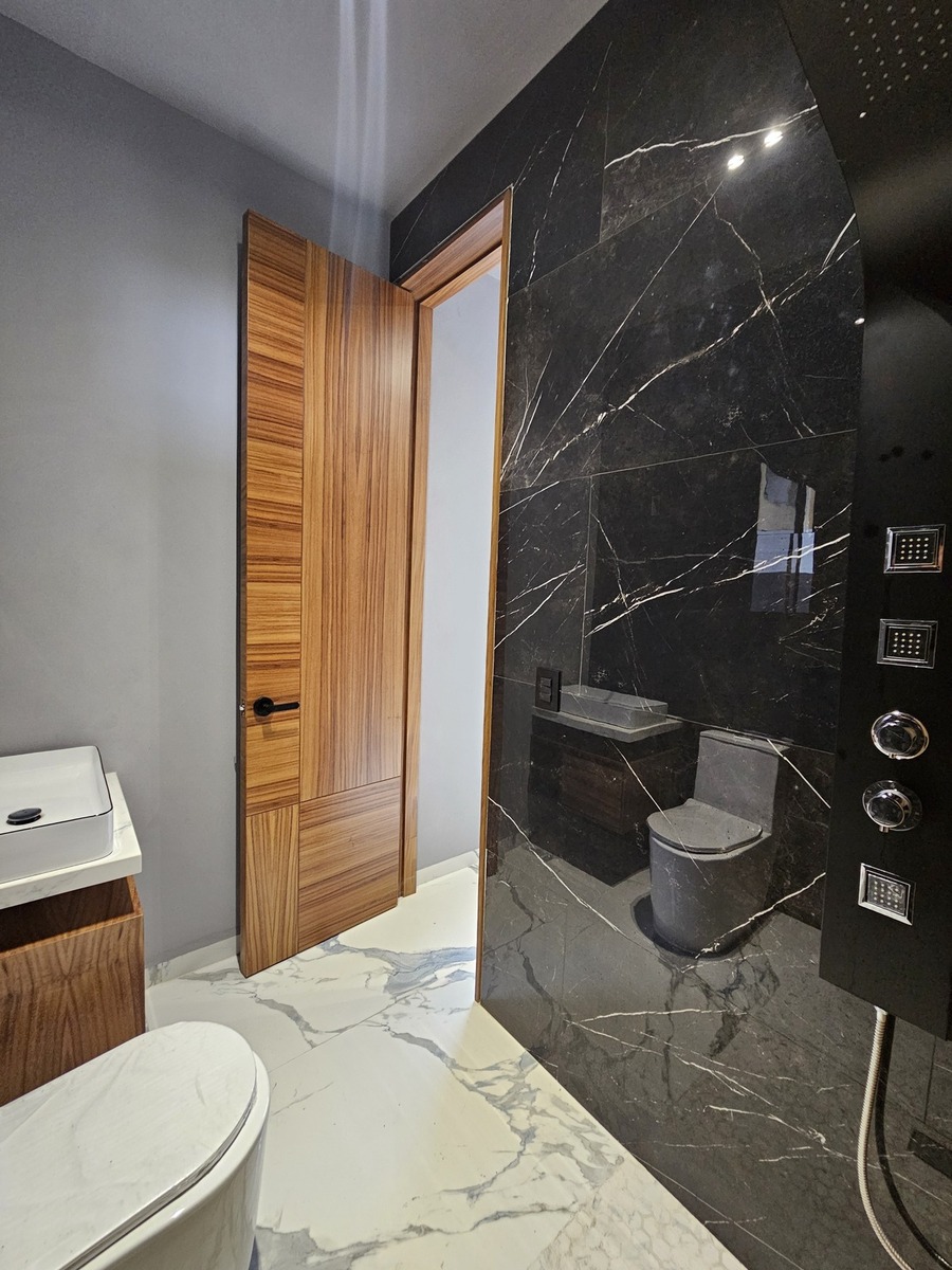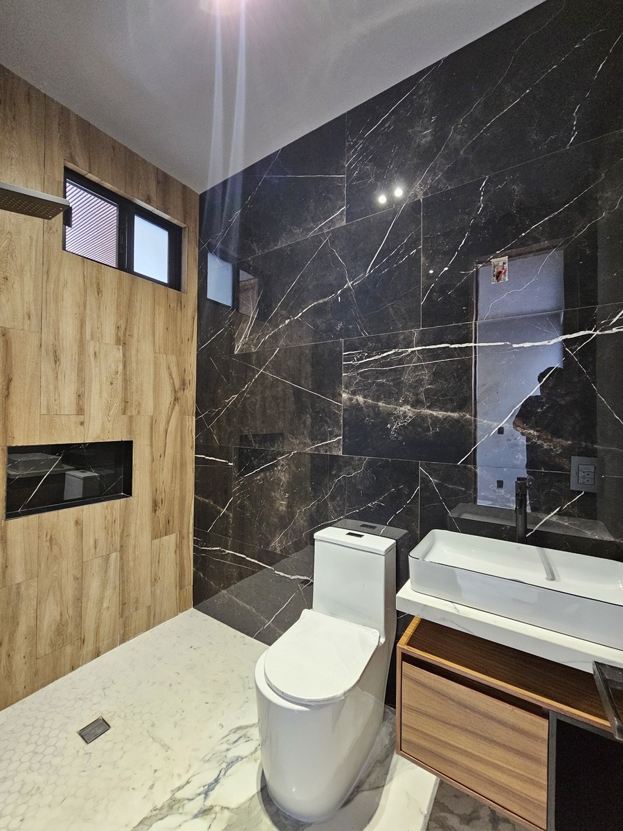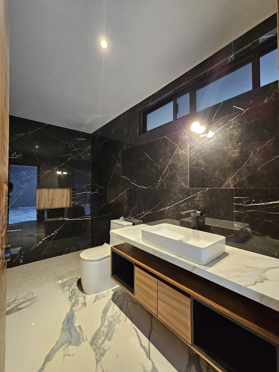 ✨The house features double height in all social areas, has 80 x 160 tiles, parota wood throughout the carpentry of the house.