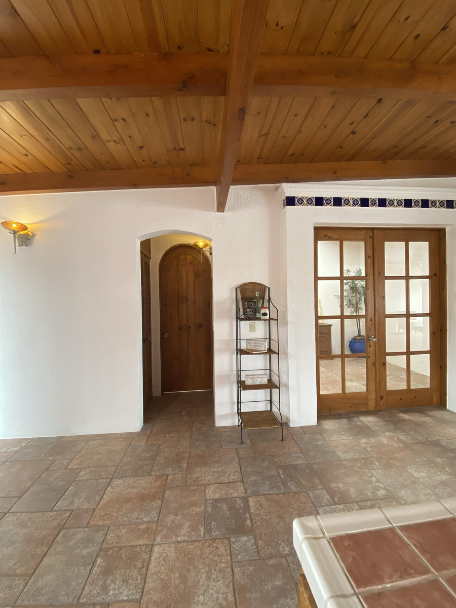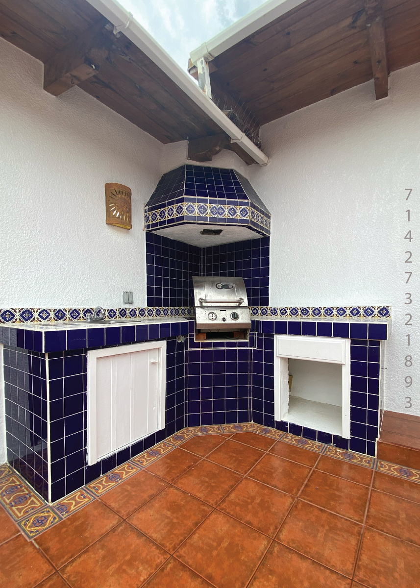Al entrar, te recibe un patio encantador con piso tipo adobe, donde la luz se cuela entre los muros y el aire huele a serenidad. Ahí mismo te espera una parrilla con barra y tarja de azulejo blanco y azul, lista para compartir momentos especiales con familia o amigos.