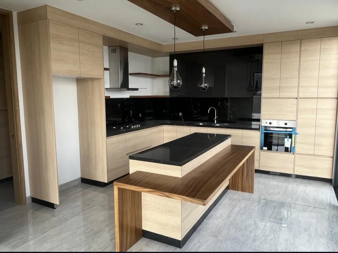 ✨ Gated community with 24-hour security, the bathroom countertops are made of quartz and Spanish porcelain, the kitchen has natural stone countertops and high-gloss doors, the main door and the staircase are made of solid Parota wood.