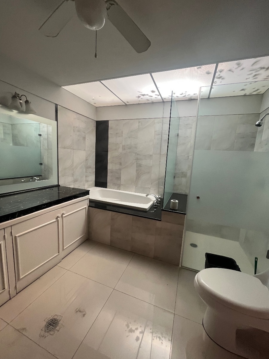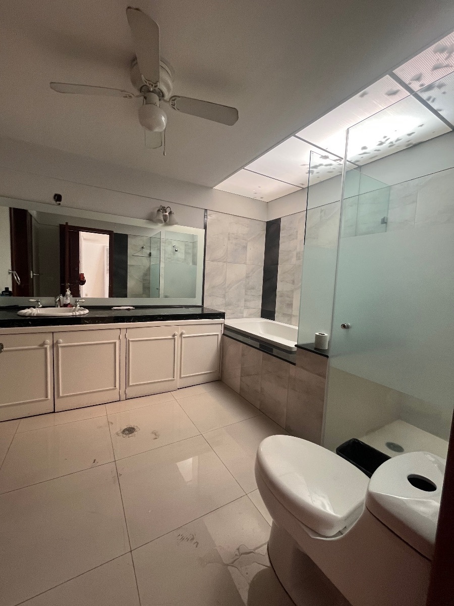En la planta alta, un amplio distribuidor le guiará hacia la imponente recámara principal, que cuenta con un espacioso estar de TV y un lujoso baño completo con tina, creando un oasis de confort y relajación. Además, encontrará 4 recámaras secundarias de generosas dimensiones, cada una con su propio baño completo, ofreciendo privacidad y comodidad a toda la familia. Un área de lavandería, un cuarto de servicio completo y una bodega completan este nivel, brindándole todo lo que necesita para una vida cómoda y sin preocupaciones.