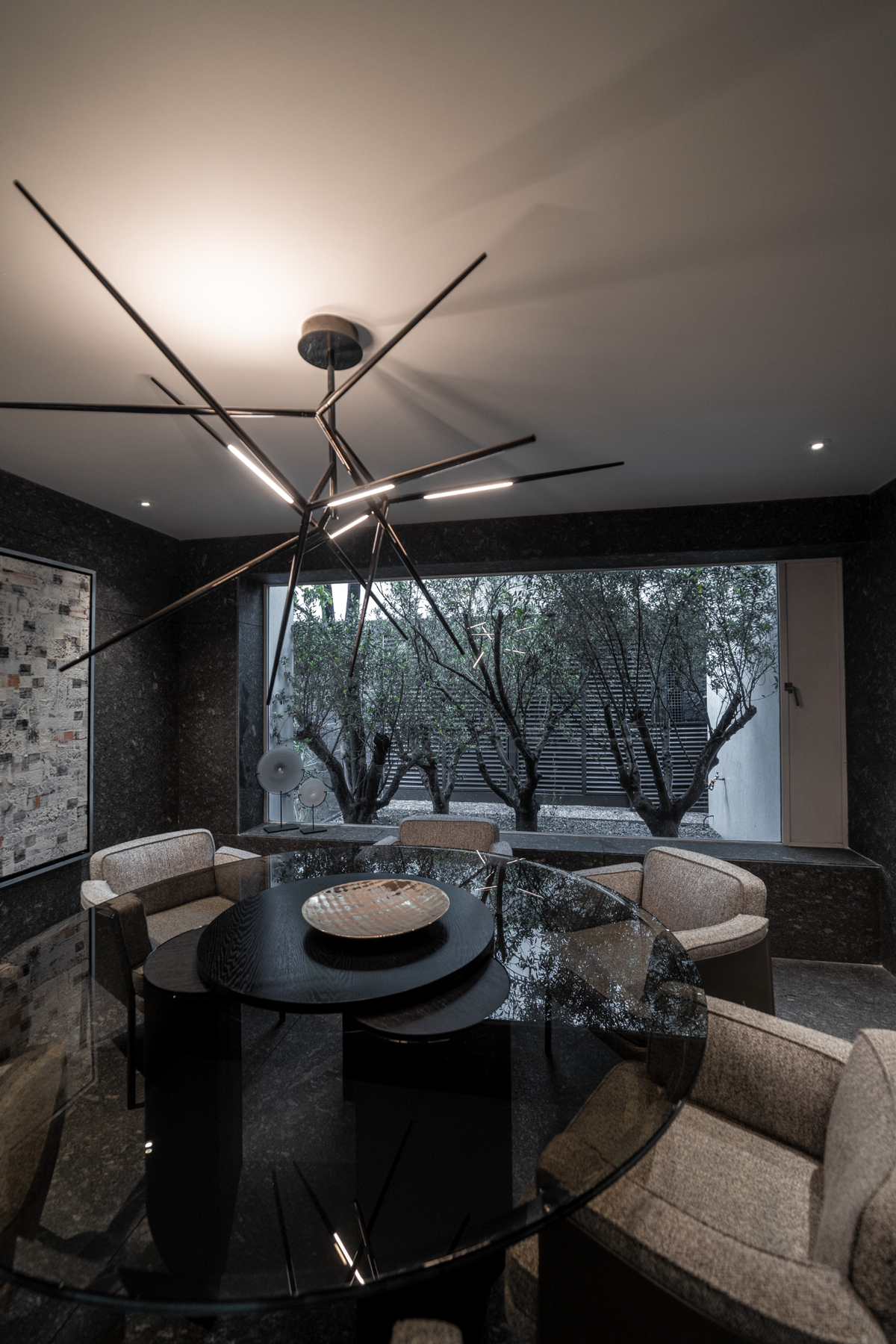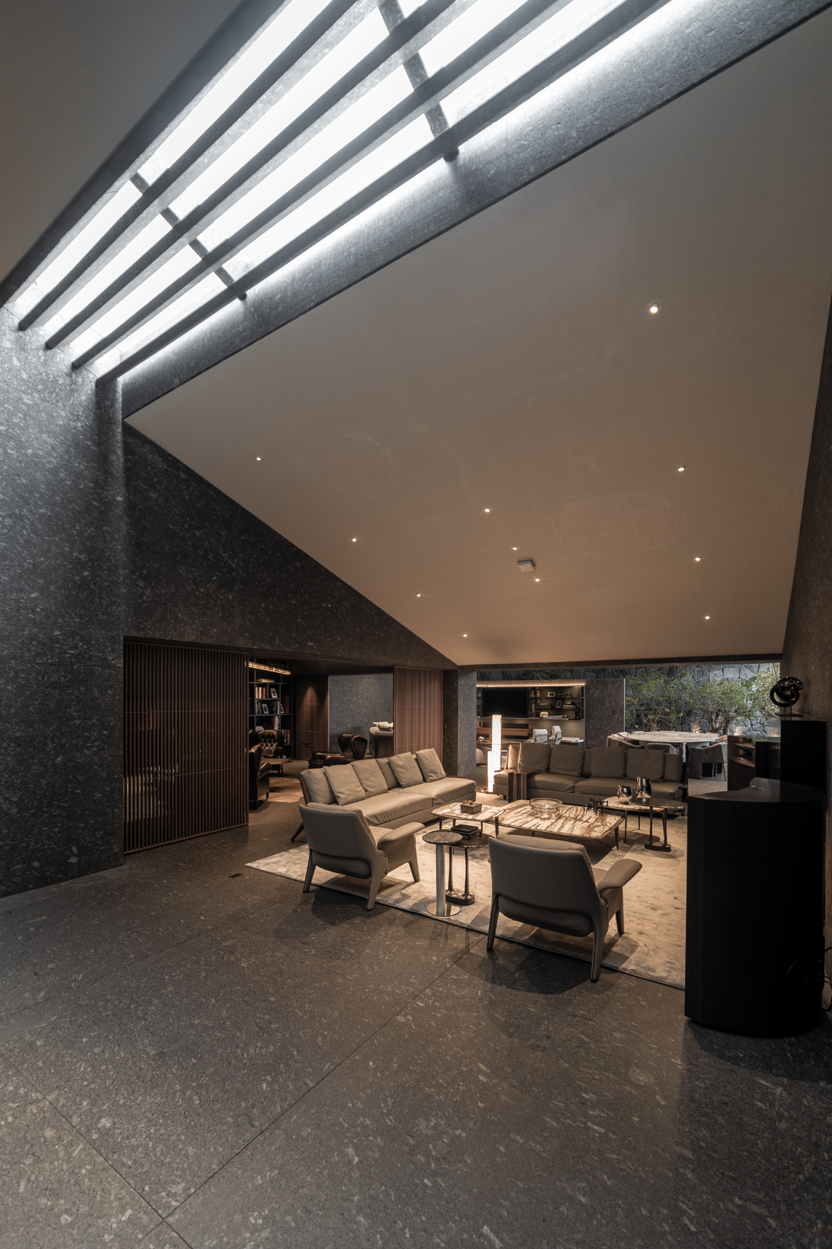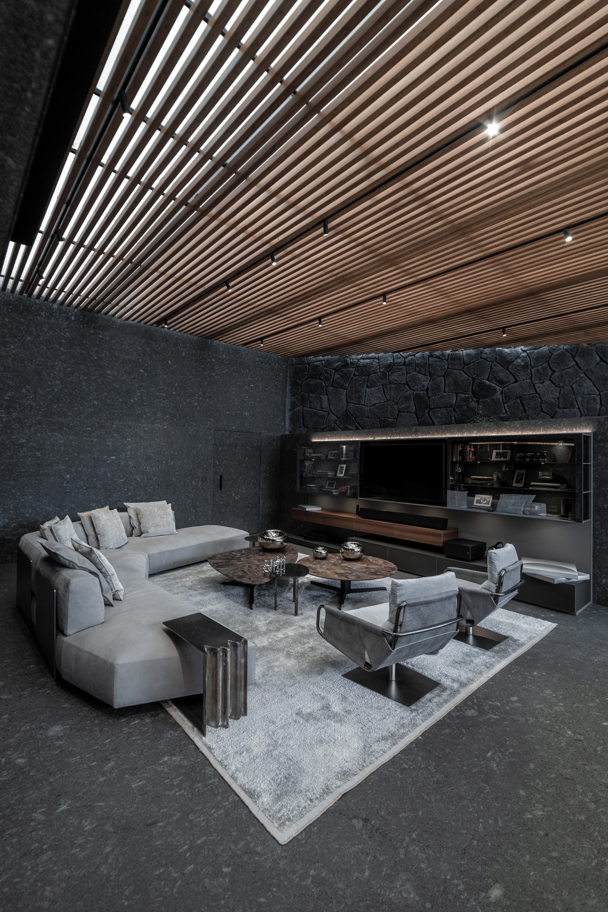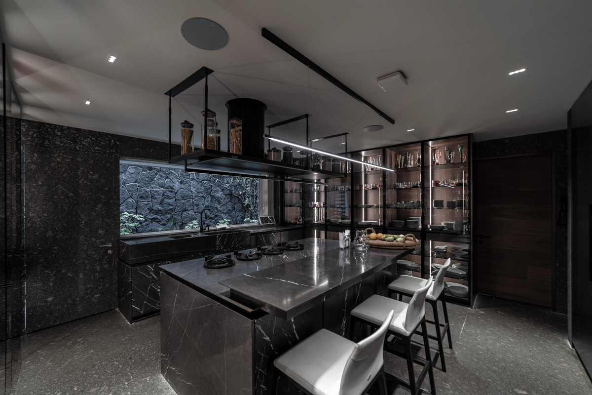 Renovation project resulting in a house with high-quality design and materials. The house includes: entrance lounge, 4 bedrooms with closet and bathroom, formal dining room, TV room, breakfast area, library, indoor garden, cinema, laundry room and drying area, service room and storage. Two options are offered: A) fixed and loose furniture, B) fixed furniture (kitchen, sliding doors, and bathrooms).Proyecto de renovación que resulta en una casa de diseño y materiales de alta calidad. La casa incluye: entrada lounge, 4 recámaras con closet y baño, comedor formal, sala de TV, antecomedor, biblioteca, jardín interior, cine, cuarto de lavado y área de secado, cuarto de servicio y bodega. Se ofrecen dos opciones: A) mobiliario fijo y suelto, B) mobiliario fijo (cocina, puertas correderas y baños).