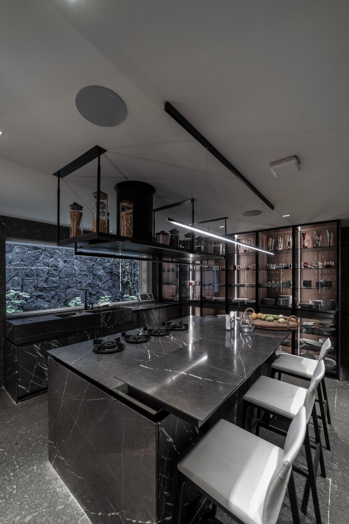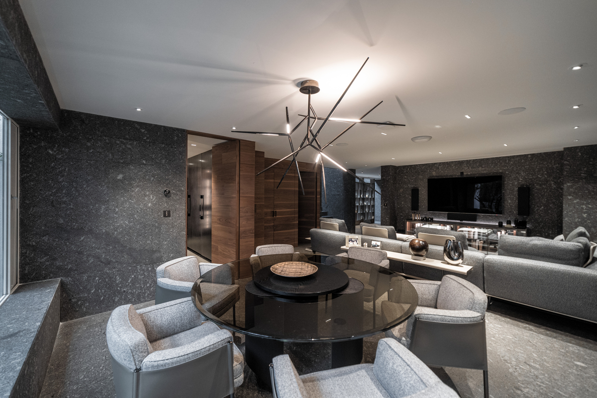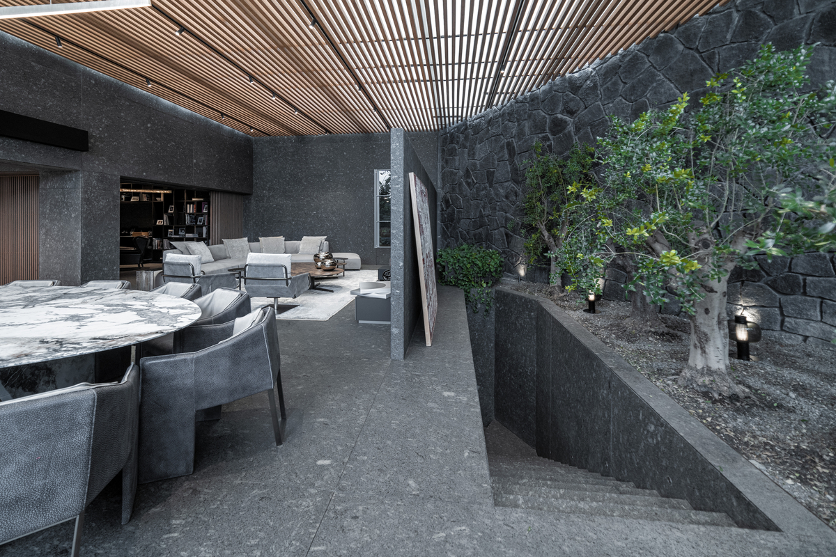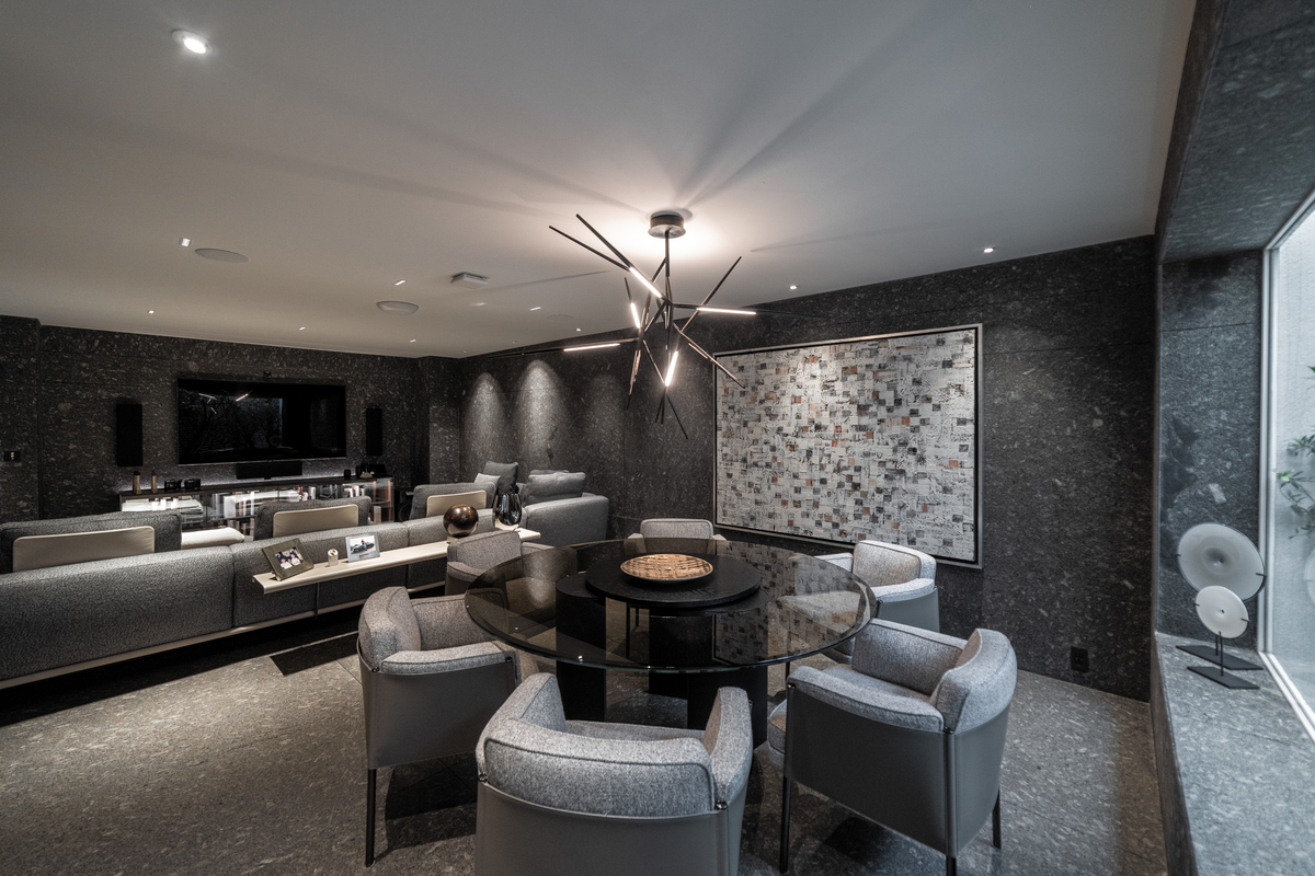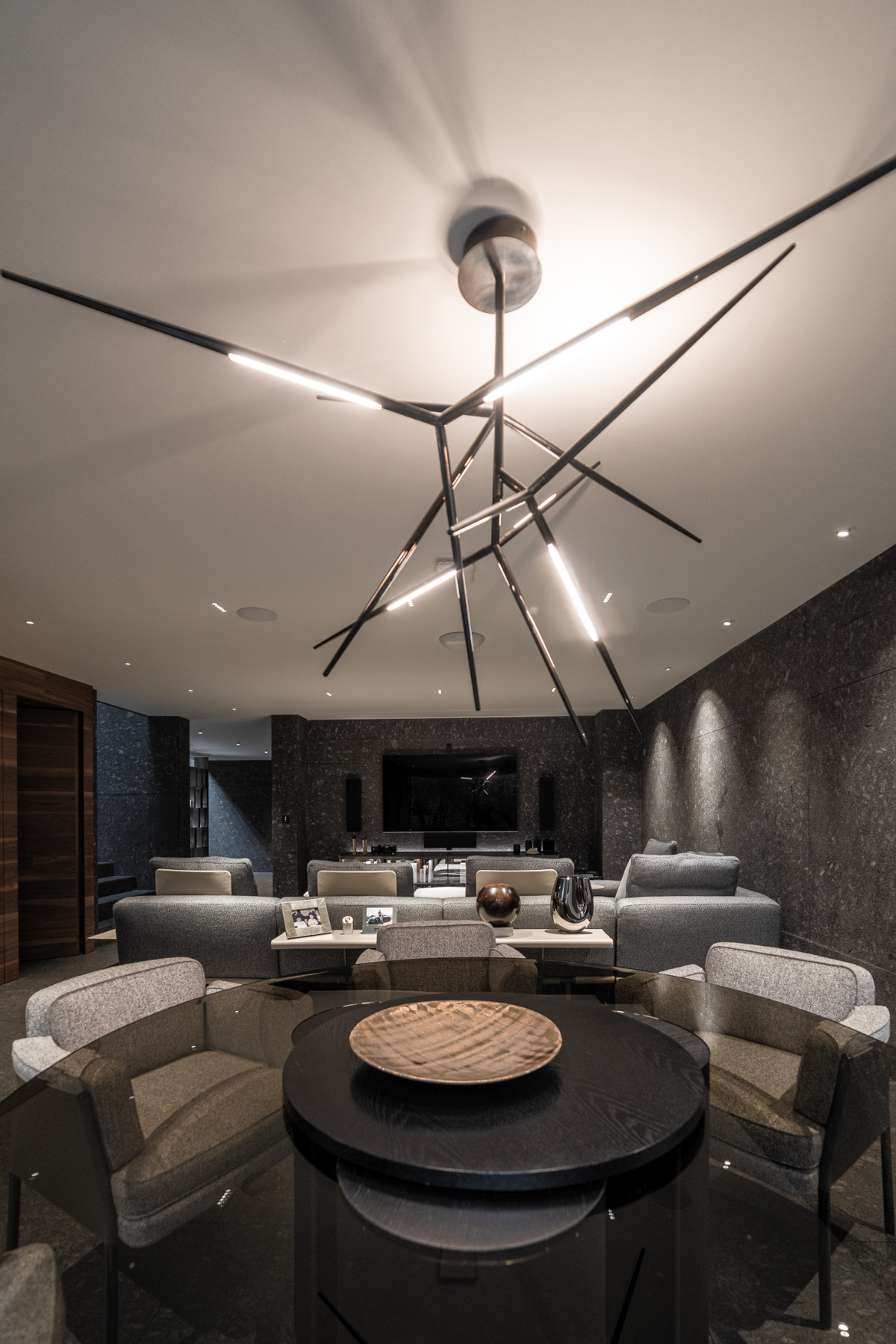 Renovation project resulting in a house with high-quality design and materials. The house includes: entrance lounge, 4 bedrooms with closet and bathroom, formal dining room, TV room, breakfast area, library, indoor garden, cinema, laundry room and drying area, service room and storage. Two options are offered: A) fixed and loose furniture, B) fixed furniture (kitchen, sliding doors, and bathrooms).Proyecto de renovación que resulta en una casa de diseño y materiales de alta calidad. La casa incluye: entrada lounge, 4 recámaras con closet y baño, comedor formal, sala de TV, antecomedor, biblioteca, jardín interior, cine, cuarto de lavado y área de secado, cuarto de servicio y bodega. Se ofrecen dos opciones: A) mobiliario fijo y suelto, B) mobiliario fijo (cocina, puertas correderas y baños).