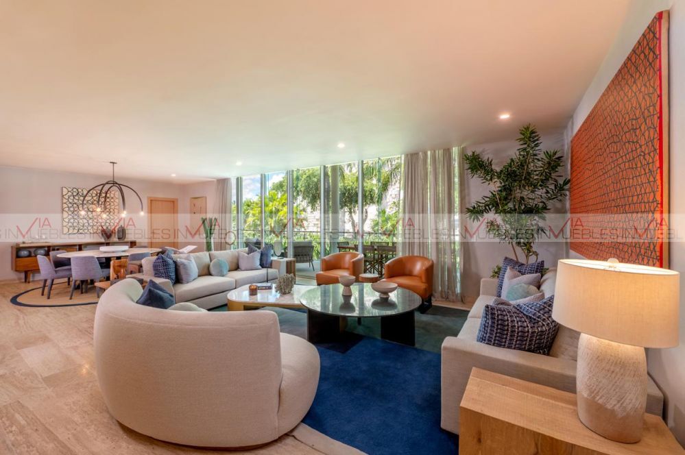 Department with unparalleled views of the Caribbean, intelligent distribution, elevator with controlled access that reaches the door of your room, ceilings, spacious terraces, hurricane-resistant panoramic windows, Kitchen equipped with a 5-burner grill, refrigerator, microwave, oven, Smeg brand sink, Italian kitchen cabinetry, bathrooms and doors, Tempered glass in windows and bathroom enclosures, Hansgrohe bathroom fixtures, Villeroy & Boch sink, Travertine marble floors, Central fan & coil air conditioning, Italian-designed kitchen heater, with stone countertop, equipped, premium marble floors, luxury bathrooms with vanity, double sink, service room, two parking spaces and storage, amenities with pool, children's club, beach, barbecues, mini golf course, valet parking 24/7 Id Gvia: 118684Departamento con vistas inigualables al caribe, distribución inteligente, elevador con acceso controlado que llega a la puerta de su habitación, plafones, amplias terrazas, ventanas panorámicas resistentes a huracanes, Cocina equipada con parrilla 5 quemadores, refrigerador, microondas, horno, tarja de marca Smeg, Carpinteria italiana de cocina, baños y puertas, Cristal templado en ventanas y canceles de baño, Accesorios de baño Hansgrohe, Lavamanos Villeroy & Boch, Pisos de mármol travertino, Aire acondicionado fan & coil central, Calentador cocina con diseño italiano, con cubierta de piedra, equipado, pisos de mármol premium, baños de lujo con tocador, doble lavabo, cuarto de servicio, dos cajones de estacionamiento y bodega, amenidades con alberca, club infantil, playa, asadores, campo de mini golf, valet parking 24/7 Id Gvia: 118684