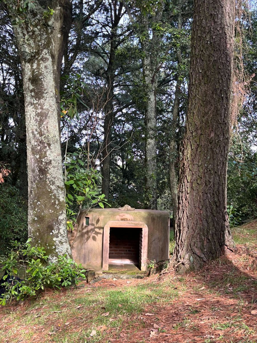 #7: Terreno: bosque maduro. Huerta con 40 árboles frutales y zarzamoras. Cancha de tenis. Temazcal. Zona de fogata.