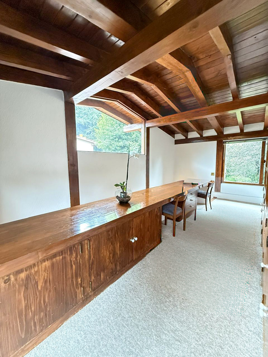 En el segundo nivel, se ubica un estudio que da acceso a otra terraza, además de las dos recámaras secundarias, cada una con baño y amplios closets, ofreciendo vistas espectaculares al jardín y áreas boscosas. Entre las comodidades adicionales, la propiedad cuenta con cisterna, calefacción y celdas solares.