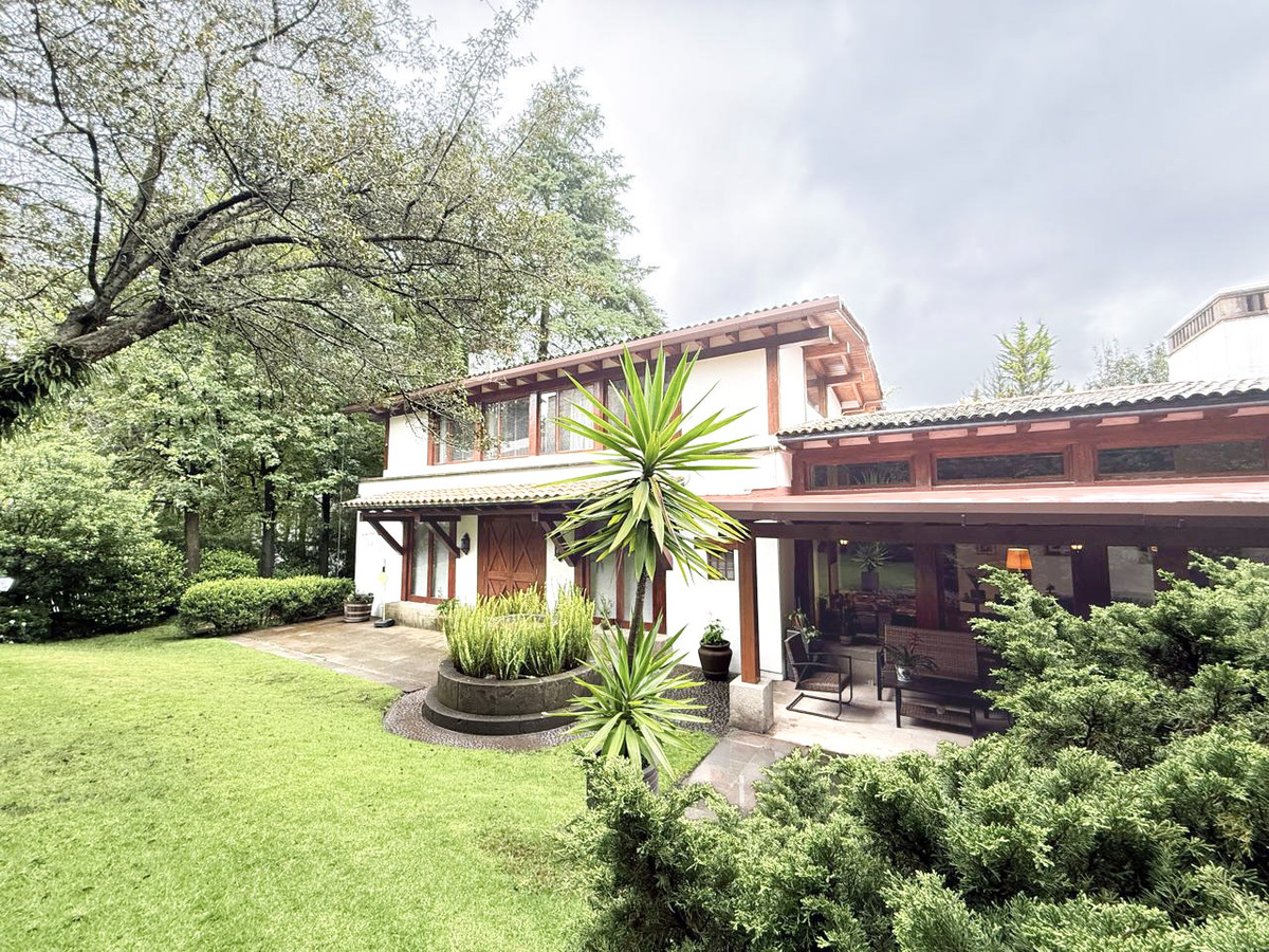 Exclusiva casa en venta en Rancho San Francisco, Álvaro Obregón, CDMX, ubicada en un terreno plano de 1053 m² y con una construcción de 505 m², rodeada de un hermoso bosque.