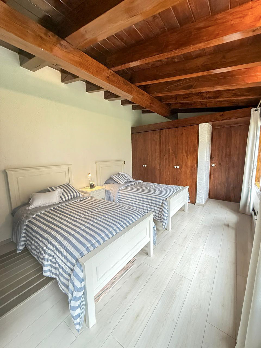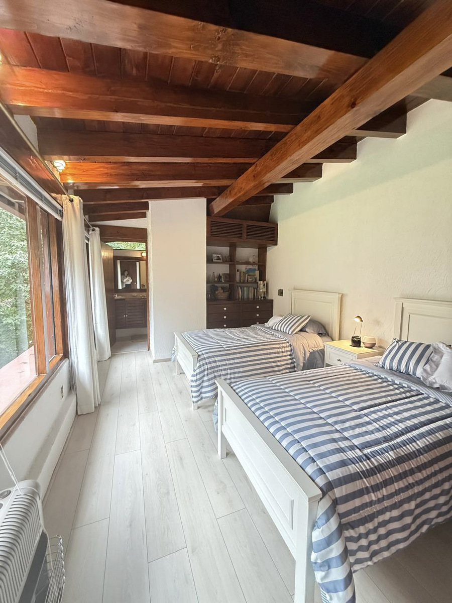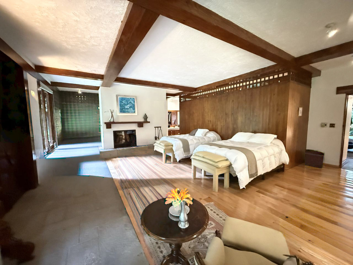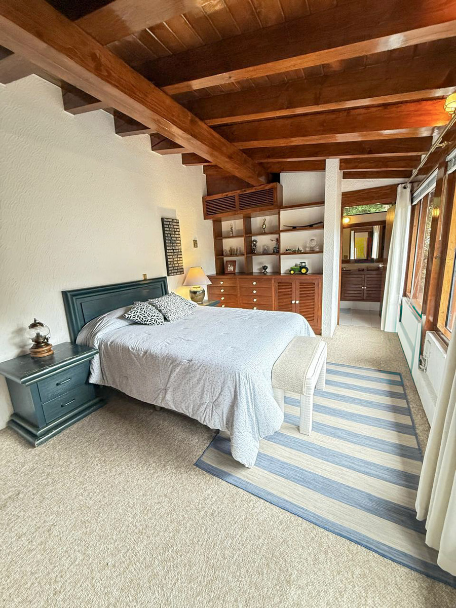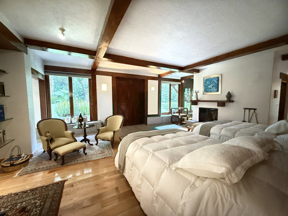 Esta propiedad cuenta con 3 recámaras, cada una con baño privado y vistas al jardín y al entorno natural. La recámara principal está situada en la planta baja, equipada con chimenea, baño con jacuzzi, amplio vestidor y acceso directo a una hermosa terraza que se integra al jardín, creando un ambiente perfecto para el esparcimiento.