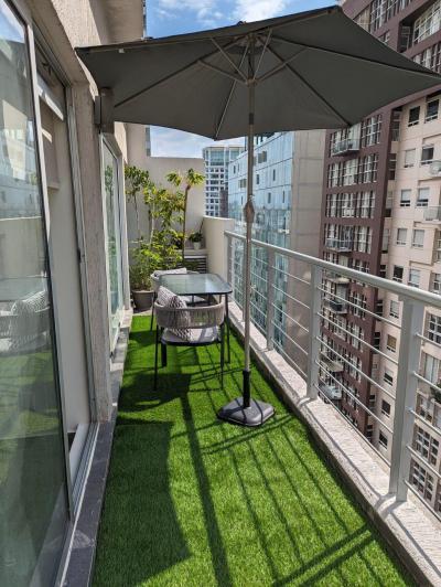 Se renta departamento amueblado de 80 m² con una terraza de 12 m², ubicado en el piso 13 del edificio Grand Tower. La propiedad cuenta con 2 recámaras, 1 baño y 2 lugares de estacionamiento. Ha sido recién remodelado e incluye cocina y área de lavado nuevas.