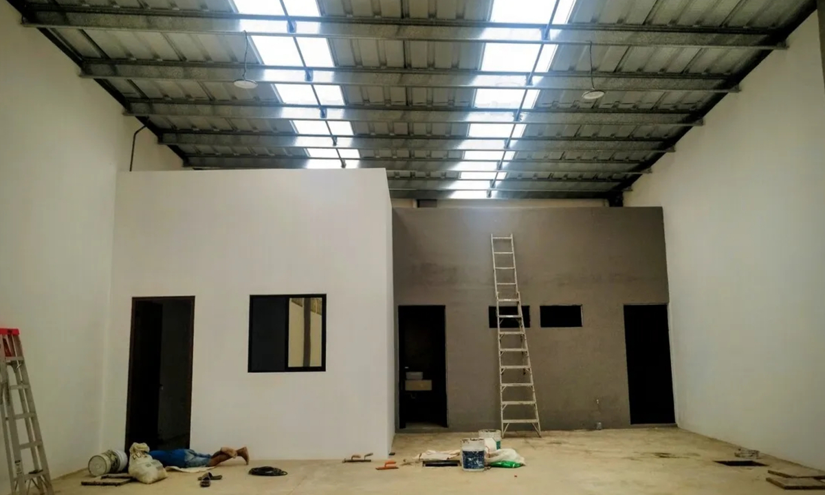 - Acceso por puerta y cortina metálica enrollable de 4 m de altura por 3.5 m de ancho