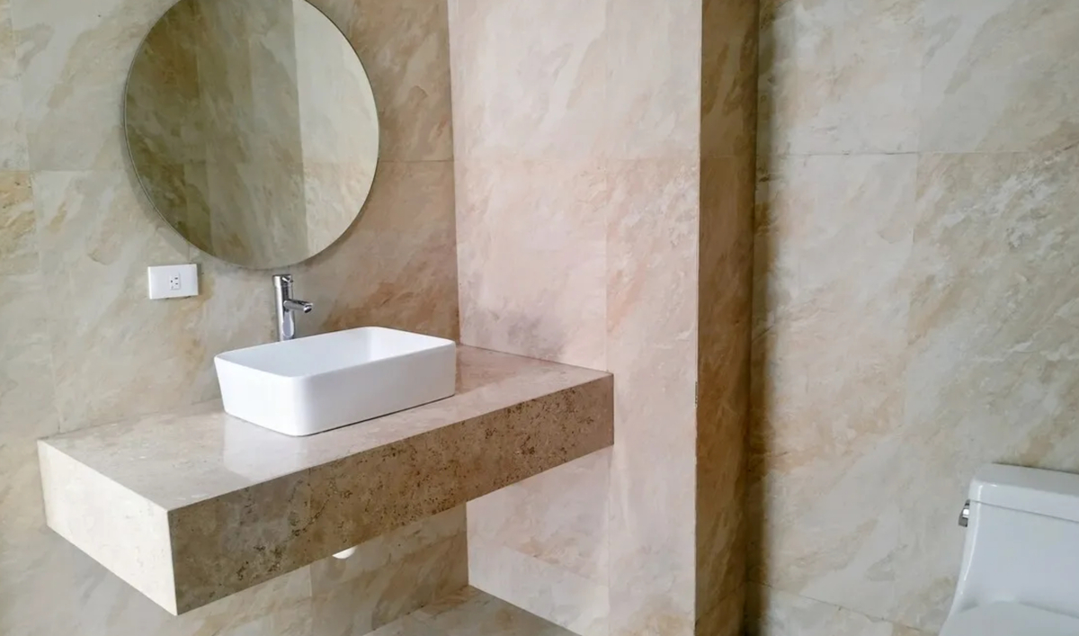 - Un baño completo con finos acabados, cristal templado en la ducha.