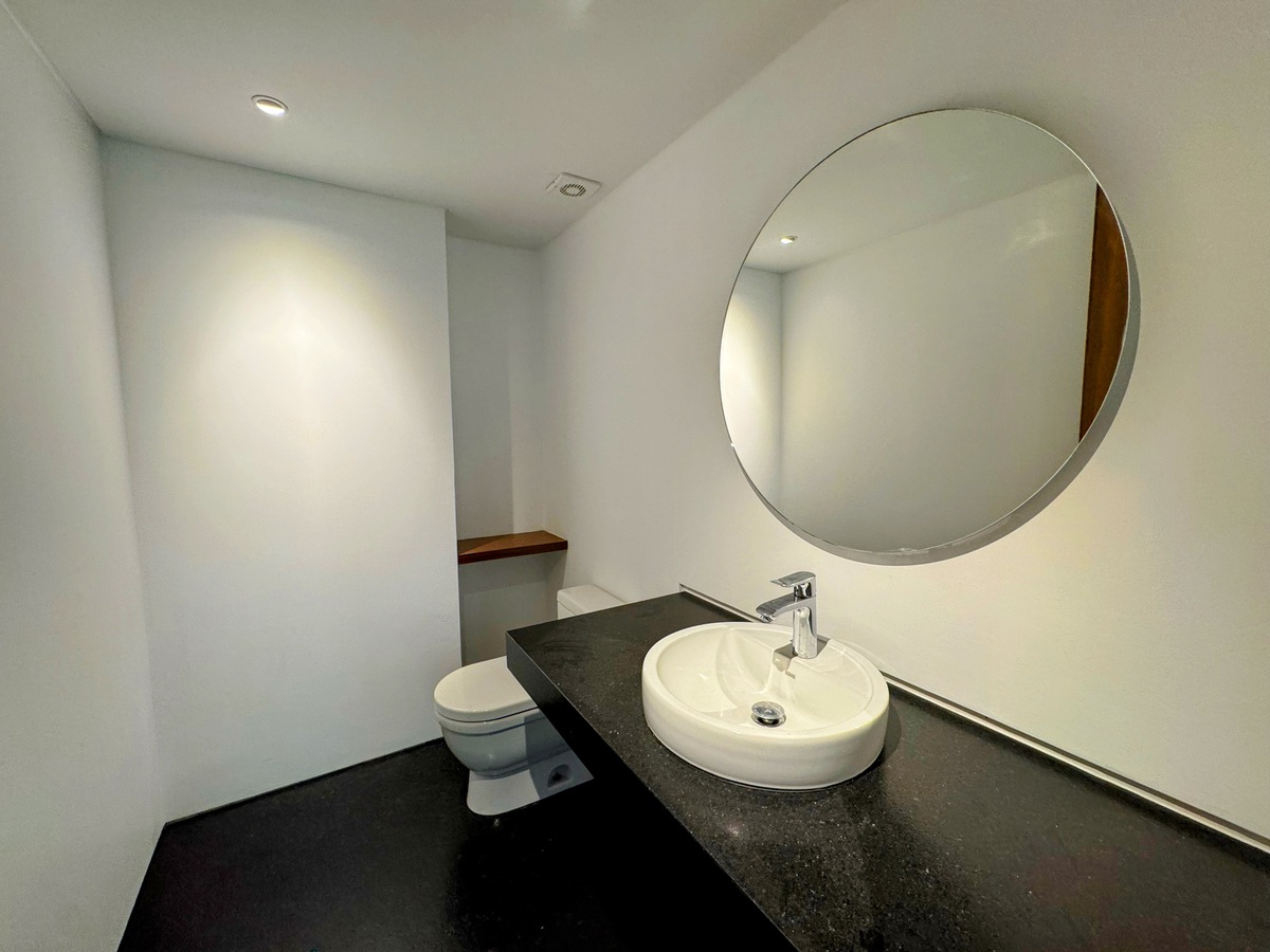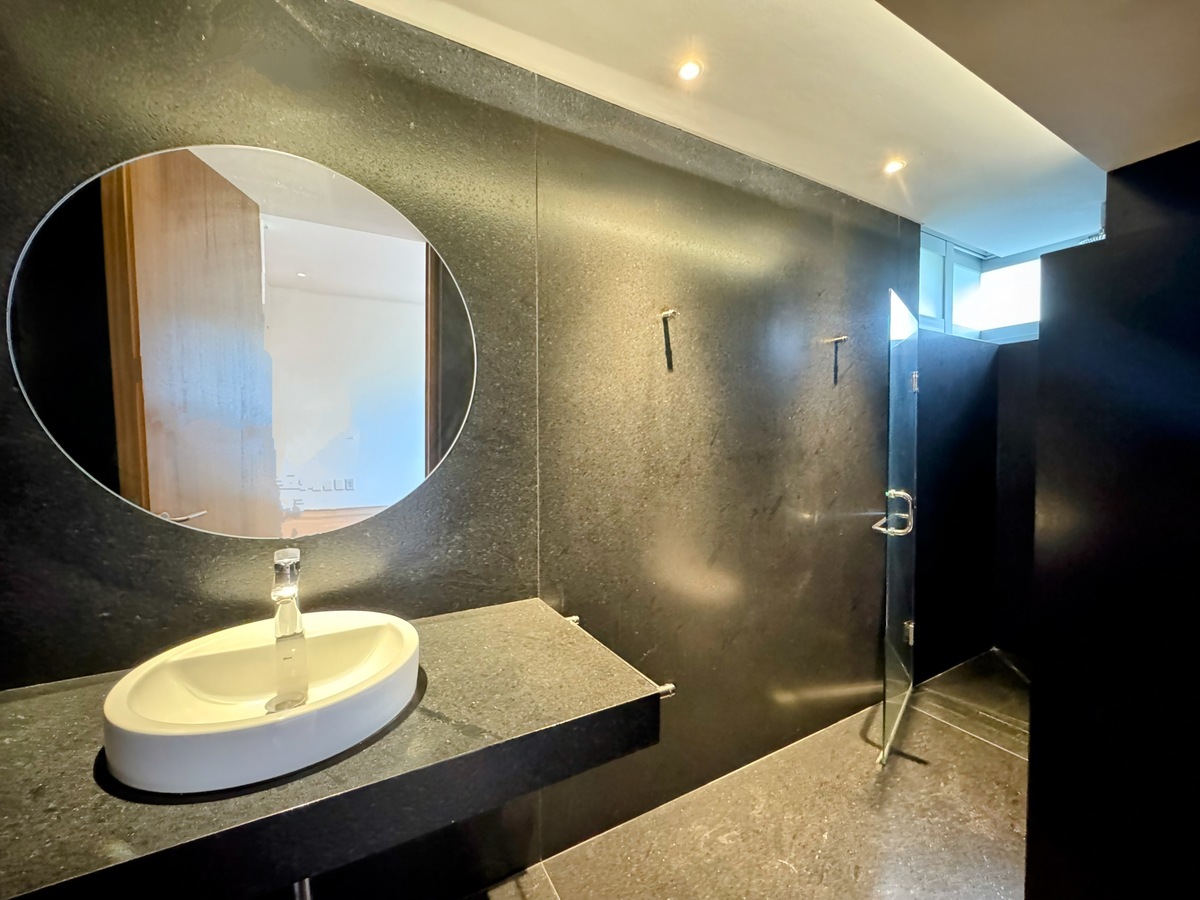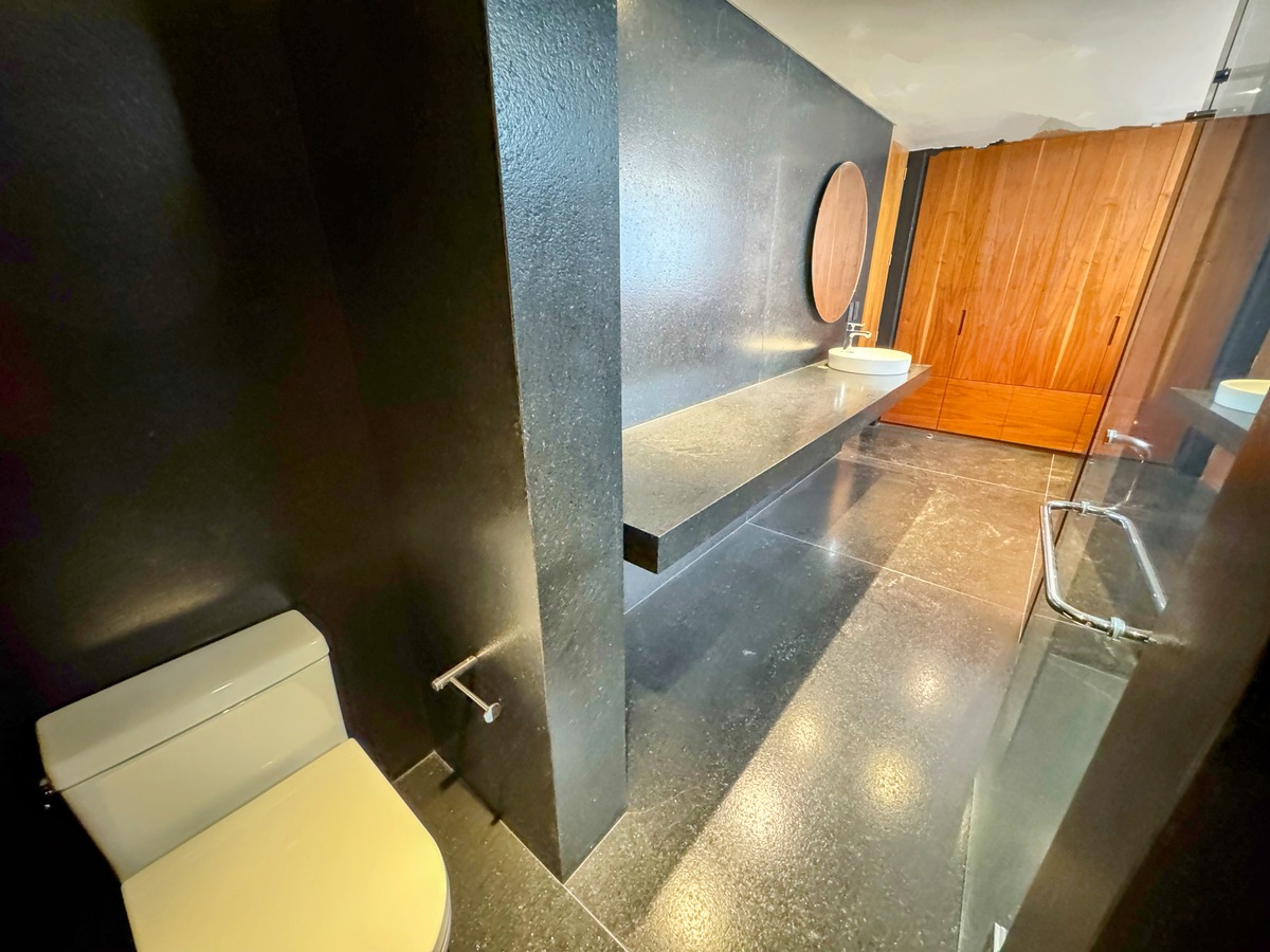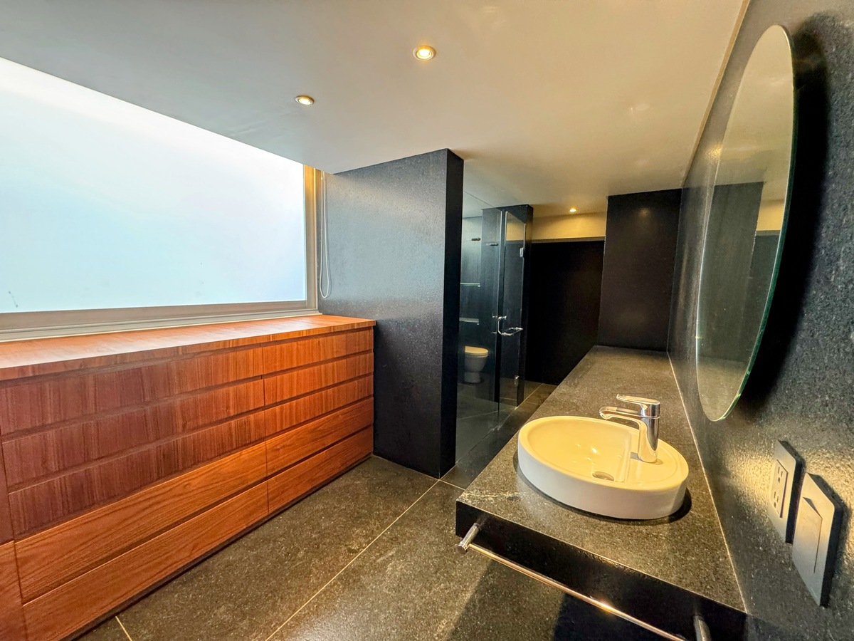 Two bedrooms, both of good size with integrated bathroom. The main one also has a balcony.