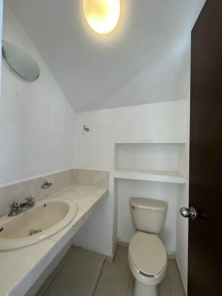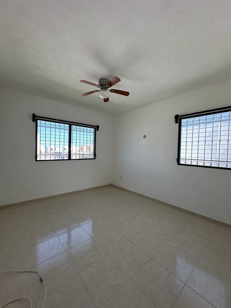 Recamara secundaria, con closet abierto y ventilador, baño completo que comparten las 2 habitaciones.