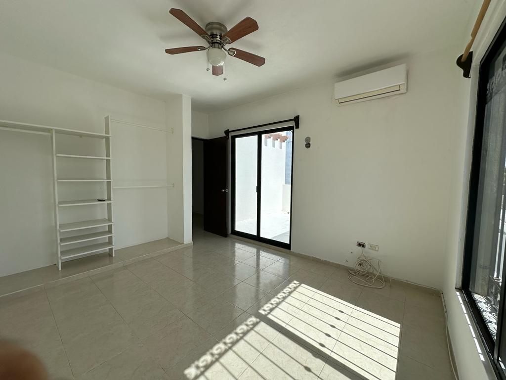 Planta Alta: Recamara principal con closet abierto, aire acondicionado, ventilador, balcón.