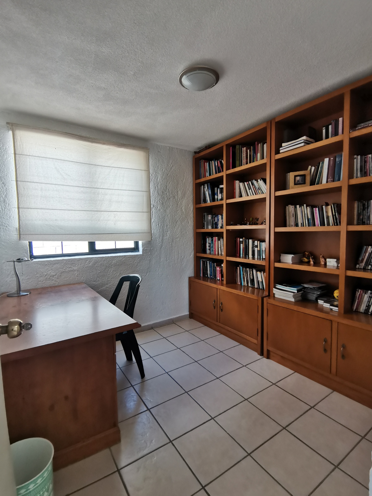 La casa cuenta con cochera para 2 autos, sala, comedor, medio baño de visitas, amplia cocina equipada con bodega y patio. En planta alta cuenta con 2 recámaras con clóset cada una y un estudio con librero y escritorio, 1 baño completo.