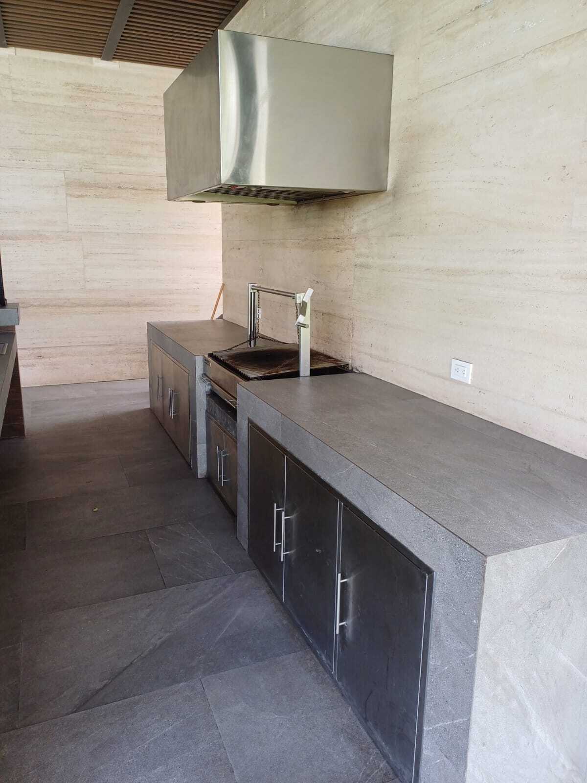 Comedor y cocina equipada, concepto abierto