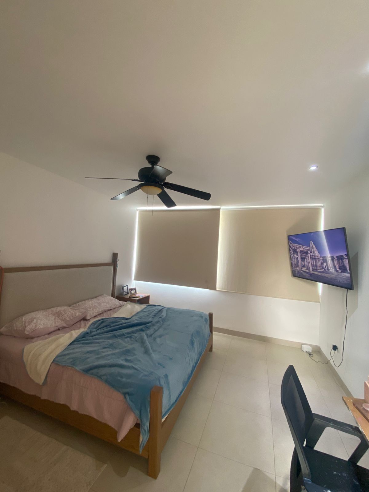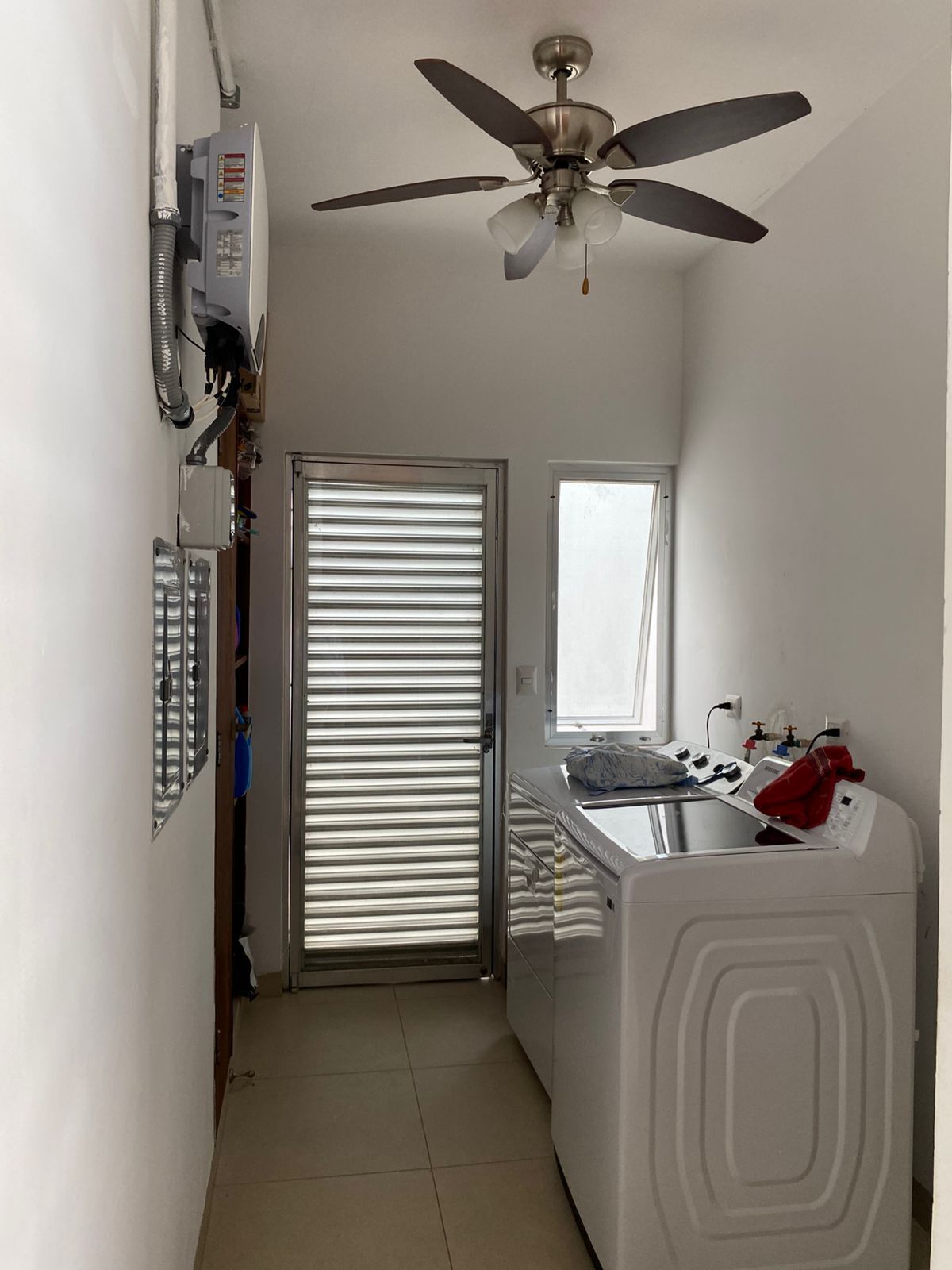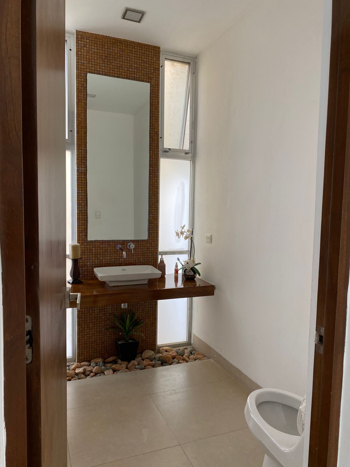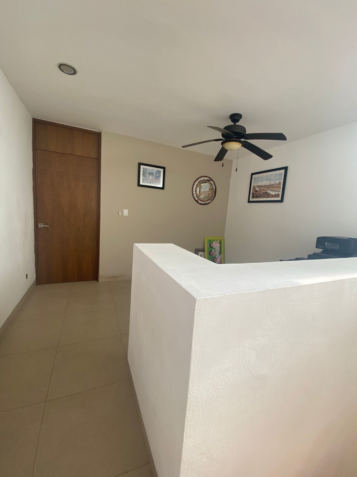 Located in one of the most exclusive areas in the north of Mérida next to Plaza la Isla, this two-story house is situated within a gated community with controlled access. It has 3 bedrooms with bathrooms and walk-in closets, one room on the ground floor with a full bathroom (ideal for an office or bedroom), a kitchen equipped with a granite bar, living room, dining room, a half bathroom for guests, laundry area, service room with bathroom, and parking for two cars. The backyard includes a pool and terrace.Se renta casa, con páneles solares y sin muebles en Privada.