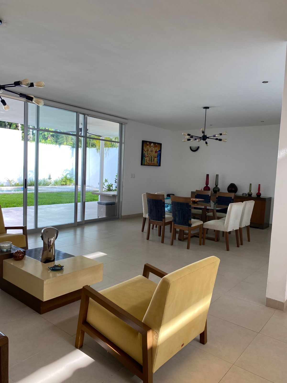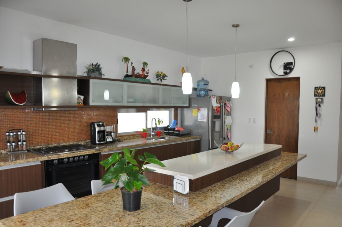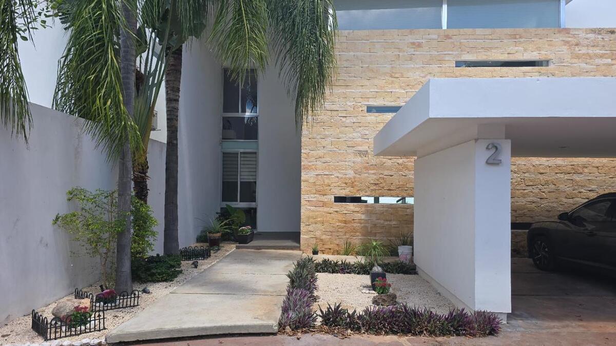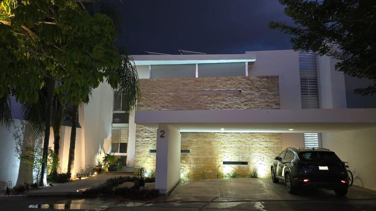 Ubicada en una de las zonas más exclusivas del norte de Mérida a un lado de Plaza la Isla, esta casa de dos plantas se encuentra dentro de una privada con acceso controlado. Cuenta con 3 recámaras con baño y clóset vestidor, una habitación en planta baja con baño completo (ideal para oficina o recámara), cocina vestida con barra de granito, sala, comedor, medio baño de visitas, área de lavado, cuarto de servicio con baño y estacionamiento para dos autos. El jardín trasero incluye alberca y terraza.