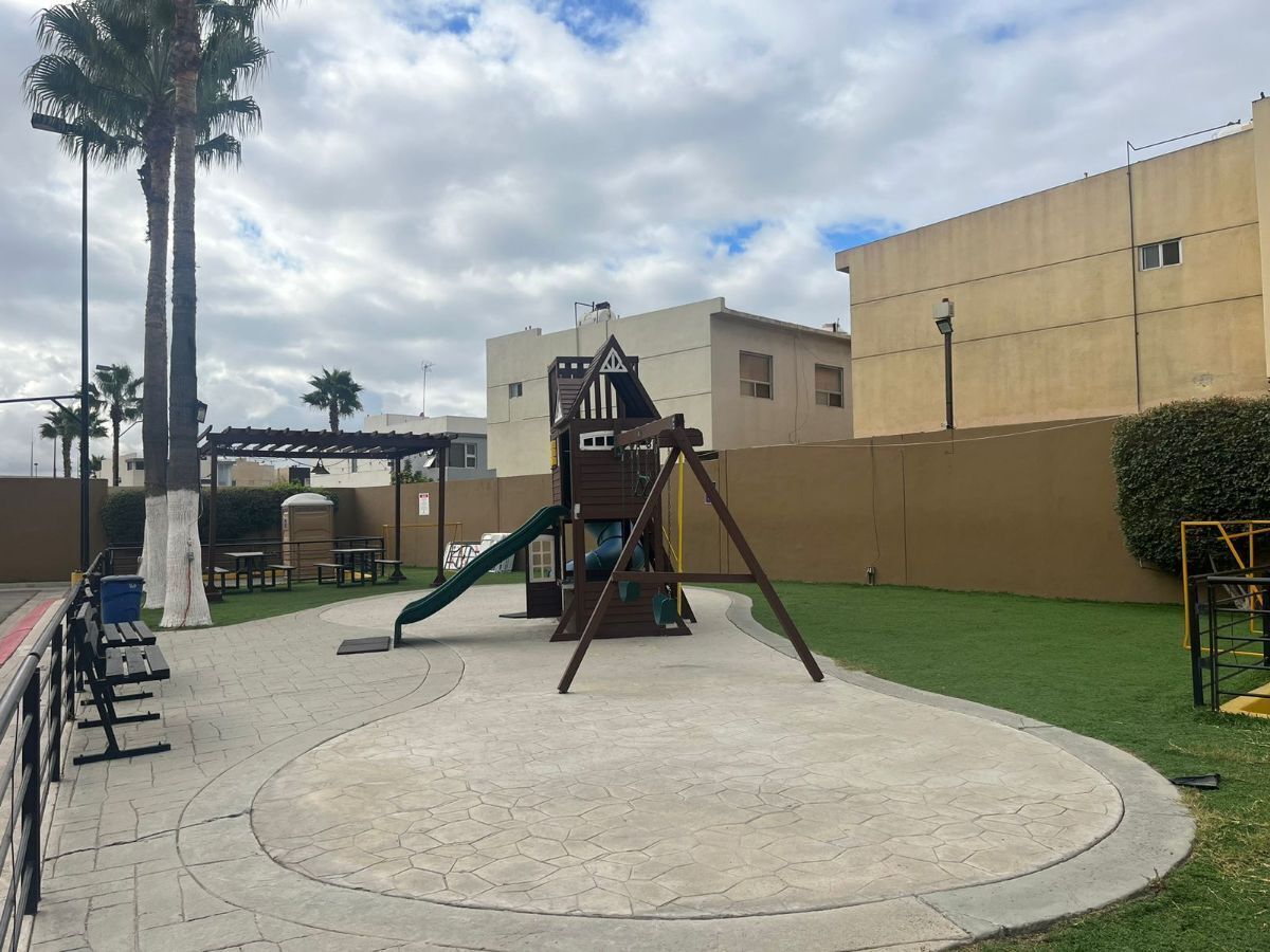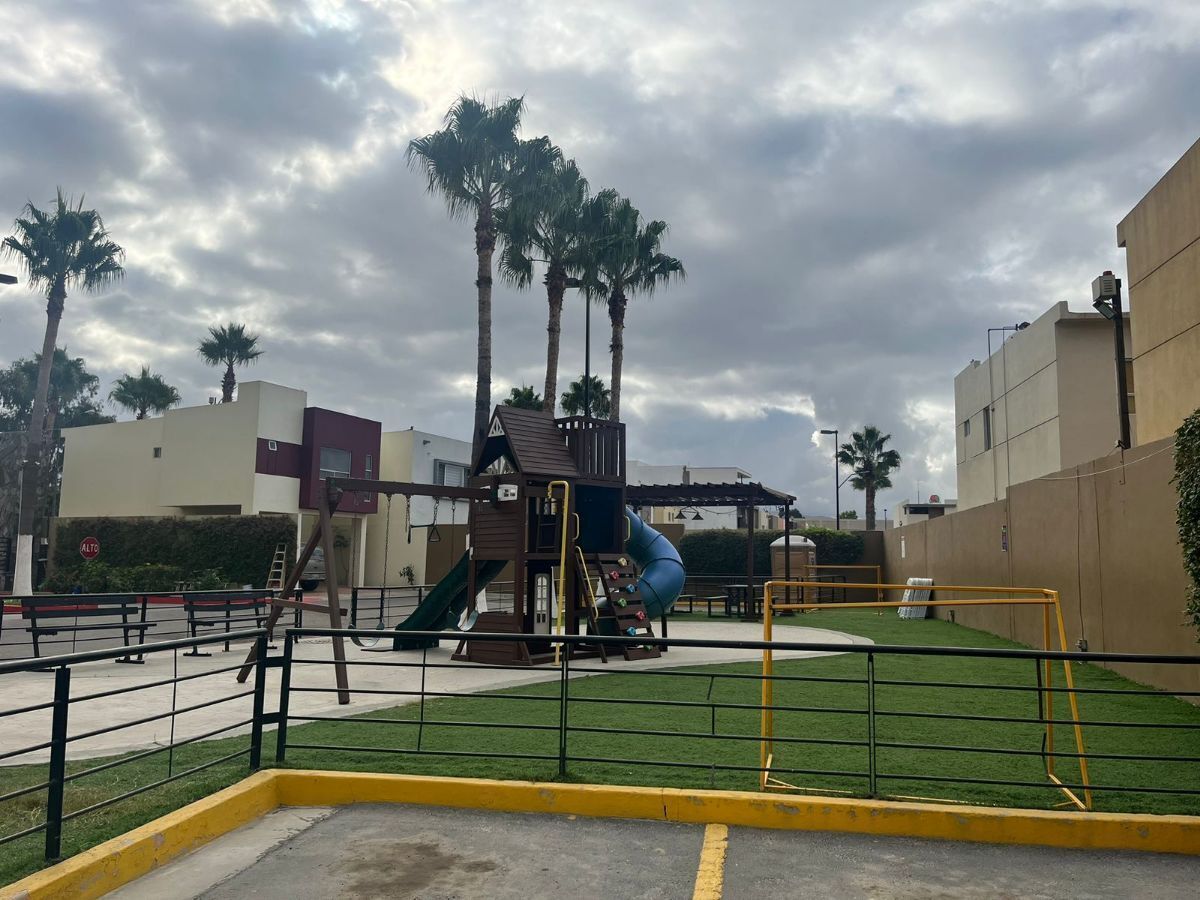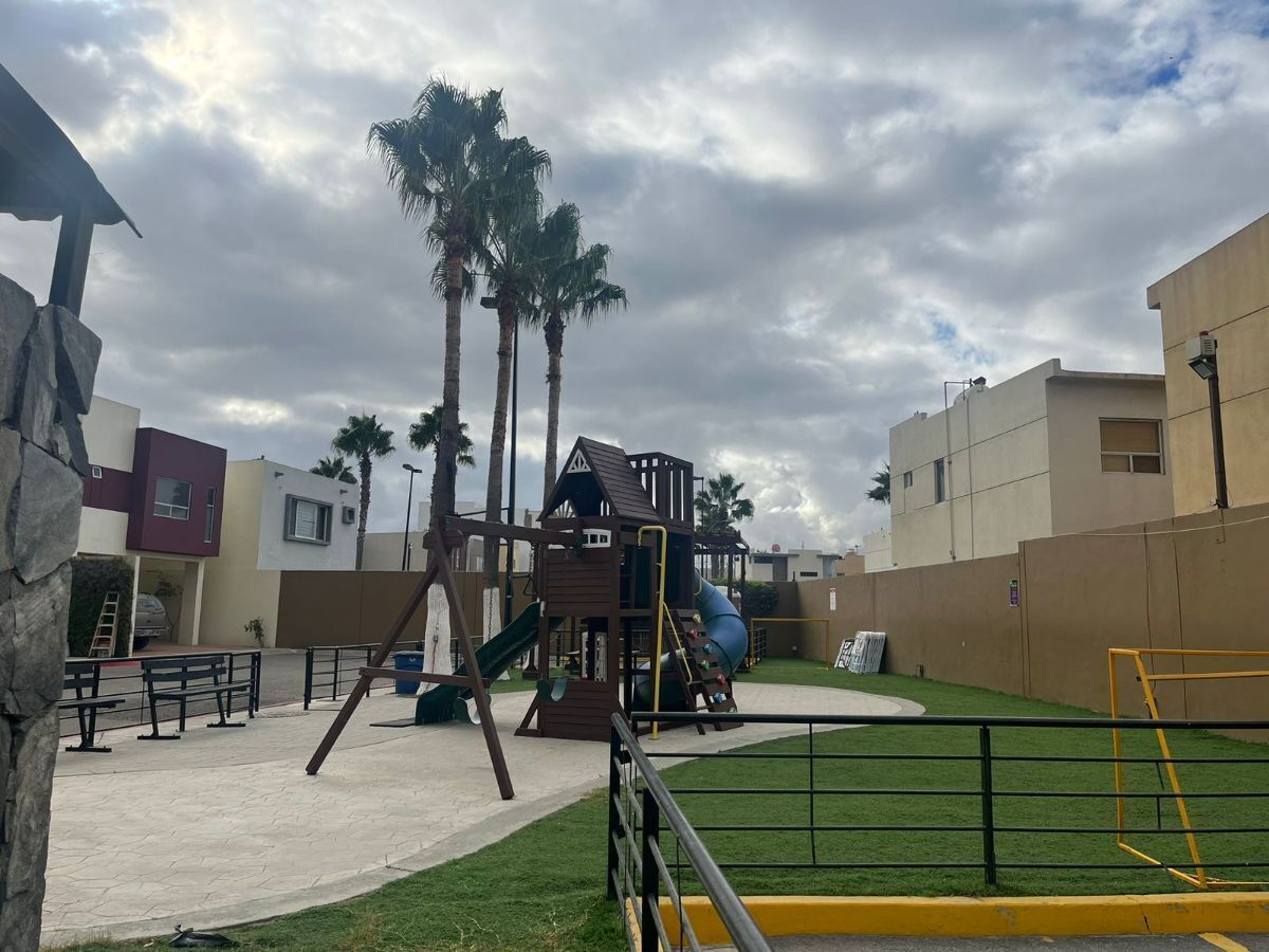 House for Rent within a private subdivision, it has a fully equipped kitchen with stove and hood, a small breakfast bar, sliding glass door next to the dining room, wood-like tile flooring, spacious living-dining room, laundry room, and a half bathroom. The second level has 3 bedrooms, the master bedroom with walk-in closet and full bathroom, secondary bedrooms with wall closet and shared bathroom. The private area has a perimeter wall, a small park with playgrounds, and 24-hour security. Very close to the IMSS Clinic, gastronomic area, and fast lane.Casa en Renta dentro de fraccionamiento privado, cuenta con cocina integral con estufa y campana, una pequeña barra desayunador, puerta corrediza de vidro a un costado del comedor, piso de loseta imitación madera, amplia sala comedor, cuarto de lavar y medio baño. Segundo nivel cuenta con 3 recamaras, recamara principal con walk in closet y baño completo, recamaras secundarios con closet de pared y baño compartido. La privada cuenta con barda perimetral, pequeño parque con juegos infantiles y seguridad las 24 horas. Muy cerca de Clínica del IMSS, zona gastronómica y via rapida.