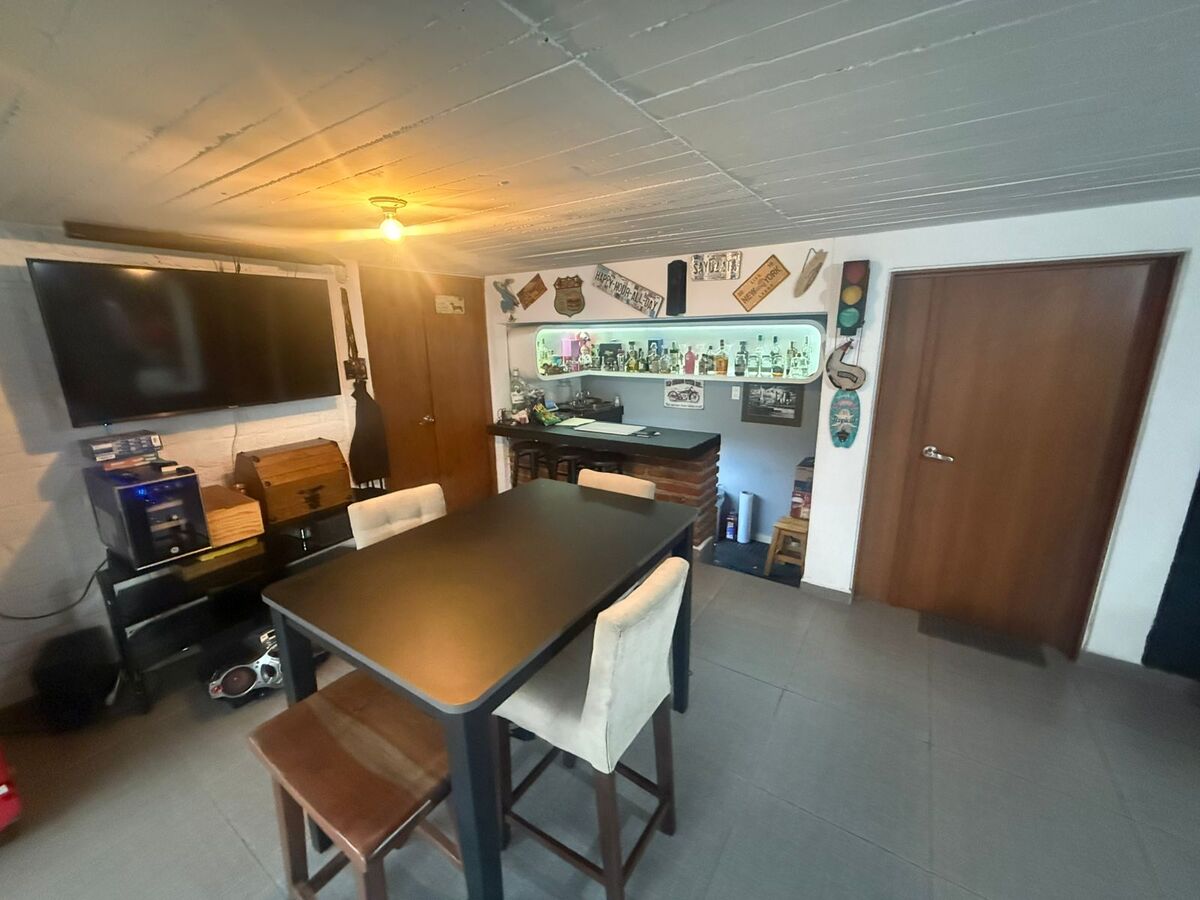 • Acceso principal que conecta con el patio y un salón de juegos con barra y medio baño.