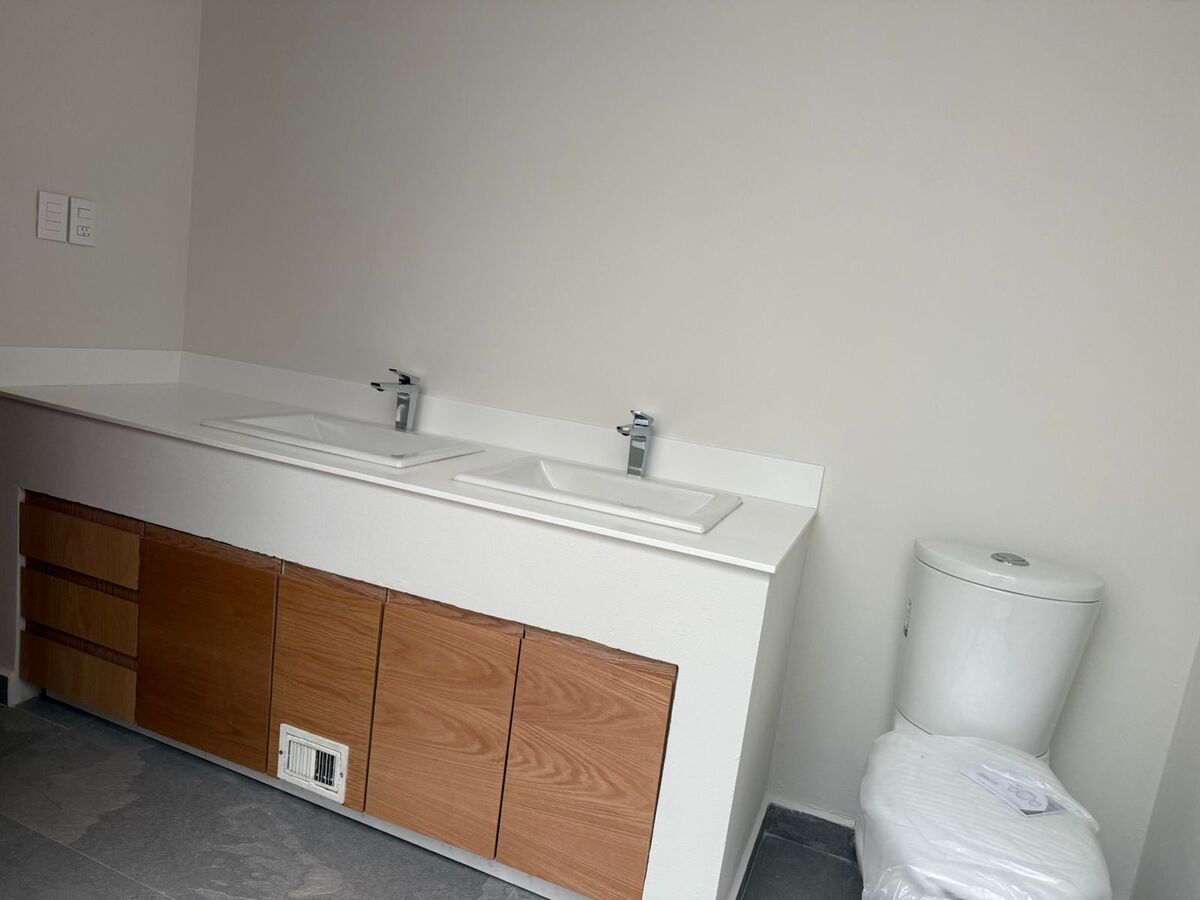Madera natural en pisos de planta baja y laminado en planta alta, baños de loseta y cocina con barra de granito.
