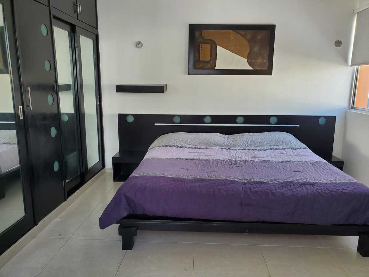 ✅ Recámara principal amueblada con cama king size, clóset vestidor, Smart TV, baño completo y aire acondicionado.