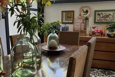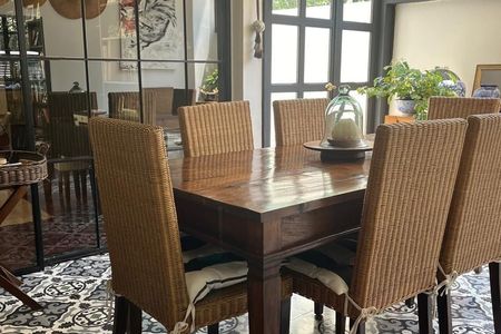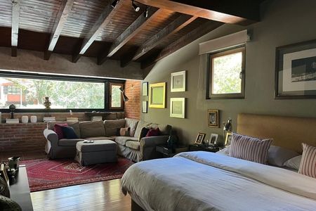 Mexican-style house with incredible view and temperature. It consists of 3 bedrooms with bathroom and dressing room. One of the bedrooms is separate and has a separate entrance. It has a family, garden and a very pleasant terrace with grill. The floors are wooden, high ceilings. Solar energy that supplies the house-. Space for 2 cars.