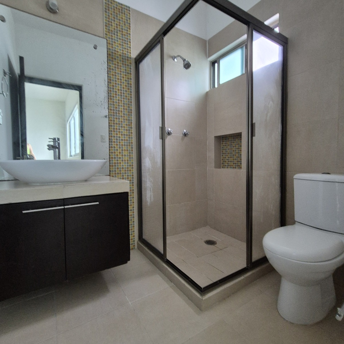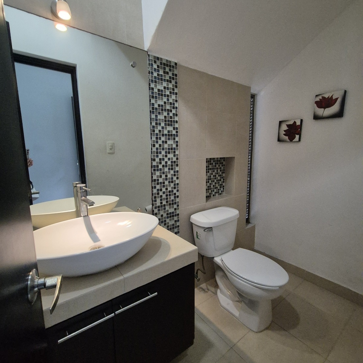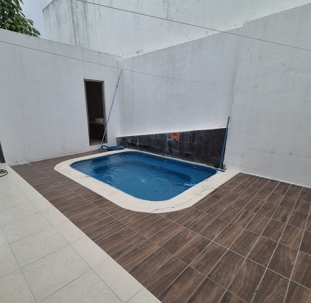 Excelente oportunidad de renta en privada; casa de 3 recámaras, 3 baños, sala, medio baño, comedor, cocina integral, patio con alberca chica con cuarto de.bombas, climatizada, caseta de Vigilancia 24/7, alberca en área común, juegos infantiles.